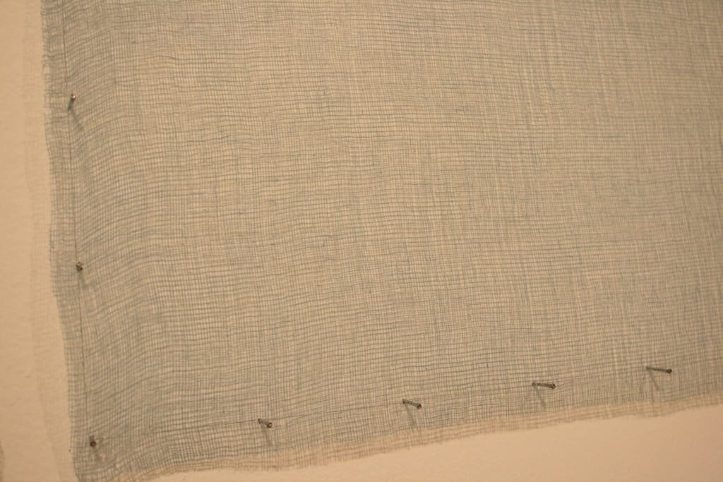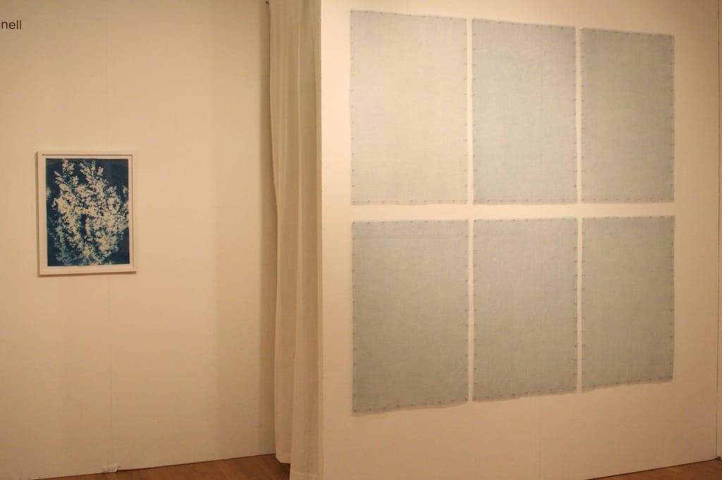 Detail shot of Brian O’Connell’s blue thread rectangles. I love how worn and used the thread looks, like the remains of a blanket. Minute variations in color are also visible throughout.