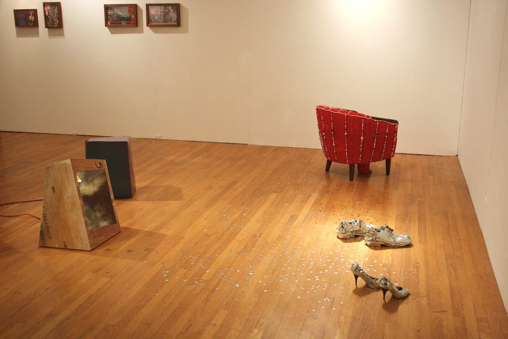 Post-disco party at Galleri Maria Veie. There are scattered shards of a disco ball on the floor and the shoes are coated with disco mirrors. Something about this piece struck me as cool, but I don’t know if I got any specific artistic message from the installation. Lo-fi disco seems like something worth pursuing though.