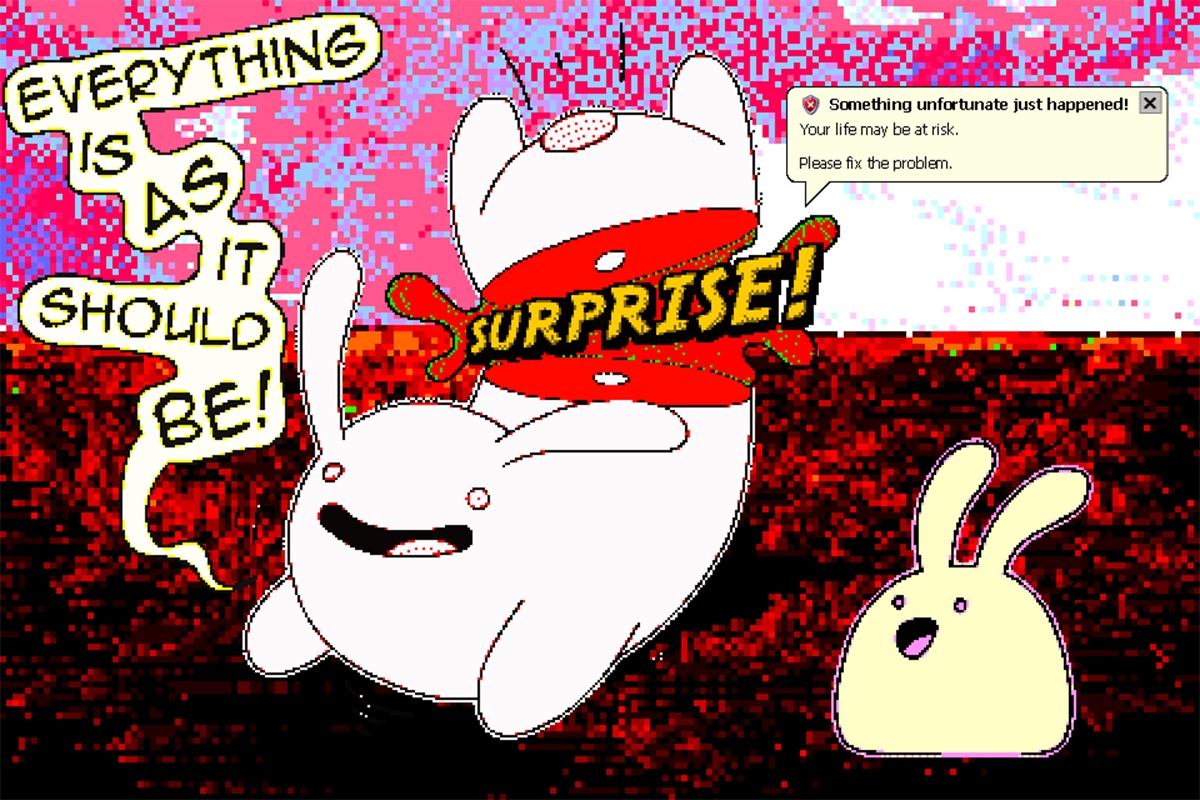 My favorite game I played at the festival was Everything is going to be OK. Billed as an “interactive zine,” it consists of an array of pages which can be selected in any order, each of which contains a minigame of sorts which is really an interactive life experience. Most of these pages represent some sort of romantic, emotional, or physical trauma or disfunction via the allegorical misadventures of cutesy bunnies and other creatures subjected to cartoonish violence. In one choice bit, the player navigates a series of “crushes,” attempting to get into a relationship with them by selecting the right dialog choice. The odds of choosing the right option are … not great. As an example of the game’s sense of humor, a successful relationship with a crush results in a message informing you that you were together for two years and had eight children. The setup fragments life and pain into a harrowingly accurate representation of how we remember traumas and frustrations.