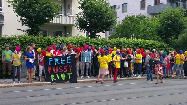 From to Slavoj Žižek condemning Pussy Riot’s persecution as the true blasphemy to just recently, FEMEN, who sawed down a cross in Kiev with a power saw to every other major music celebrity ever, a massive list of Russian intellectuals and public personas and international attention the likes a Russian case has never seen before. But mostly, Pussy Riot have become revolutionary mascots for the hordes of protestors in the streets of Russia, expats abroad and all dissidence within the oppressive system.