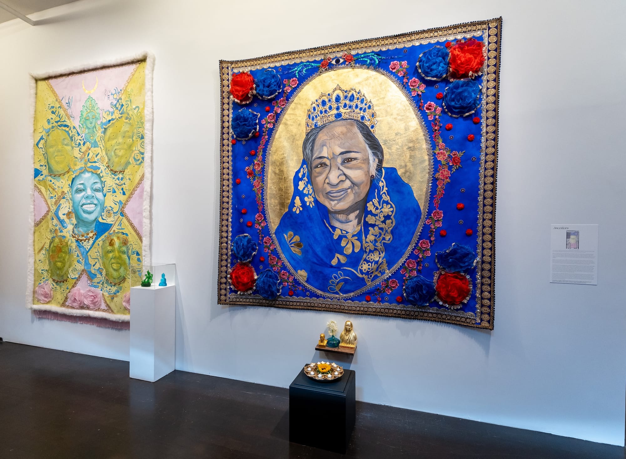 On walking through the doors of Talkin’ Bout a Revolution at Chelsea’s Pen and Brush, it is impossible not to marvel at the sheer volume of work that stretches across the gallery’s two floors. For her mid-career survey on view through February 14, 2026, South Asian artist Pyaari Azaadi (formerly known as Jaishri Abichandani) produced over 200 pieces, which include wall-sized multimedia paintings, sculptures that range between life-sized and miniature, photographs of Desi queer nightlife from 1990s New York City, and performance art video installations. But perhaps most striking is that Azaadi’s art is a testament to the relationships she has cultivated within the South Asian diaspora over her decades of practice as an artist, activist, and community organizer.
