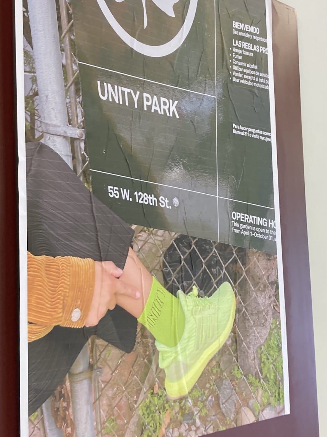 In the place of polished artworks attributed to a singular artist, the SMRC celebrates a vibrant mélange of QTPOC voices — voices that speak to, bounce off of, and expand on each other in unexpected ways. A photo of Naima Green’s lime-green “Unity” sock outside Unity Park in Harlem visually resonates with a series of Pantone swatches a few feet away; in another corner, the lyric score to experimental composer Pauline Oliveros’s “Thirteen Changes” folds over a speaker vibrating with a low beat. Giant enlargements of a “Contract with Mother Earth” vibe with a scholarly piece on the frequency at which music becomes the most meditative. At the time of my visit to the gallery — then featuring Ifekoya, Green, and Rezaire — the theme of self-love mingled with both romantic love and love of the planet.