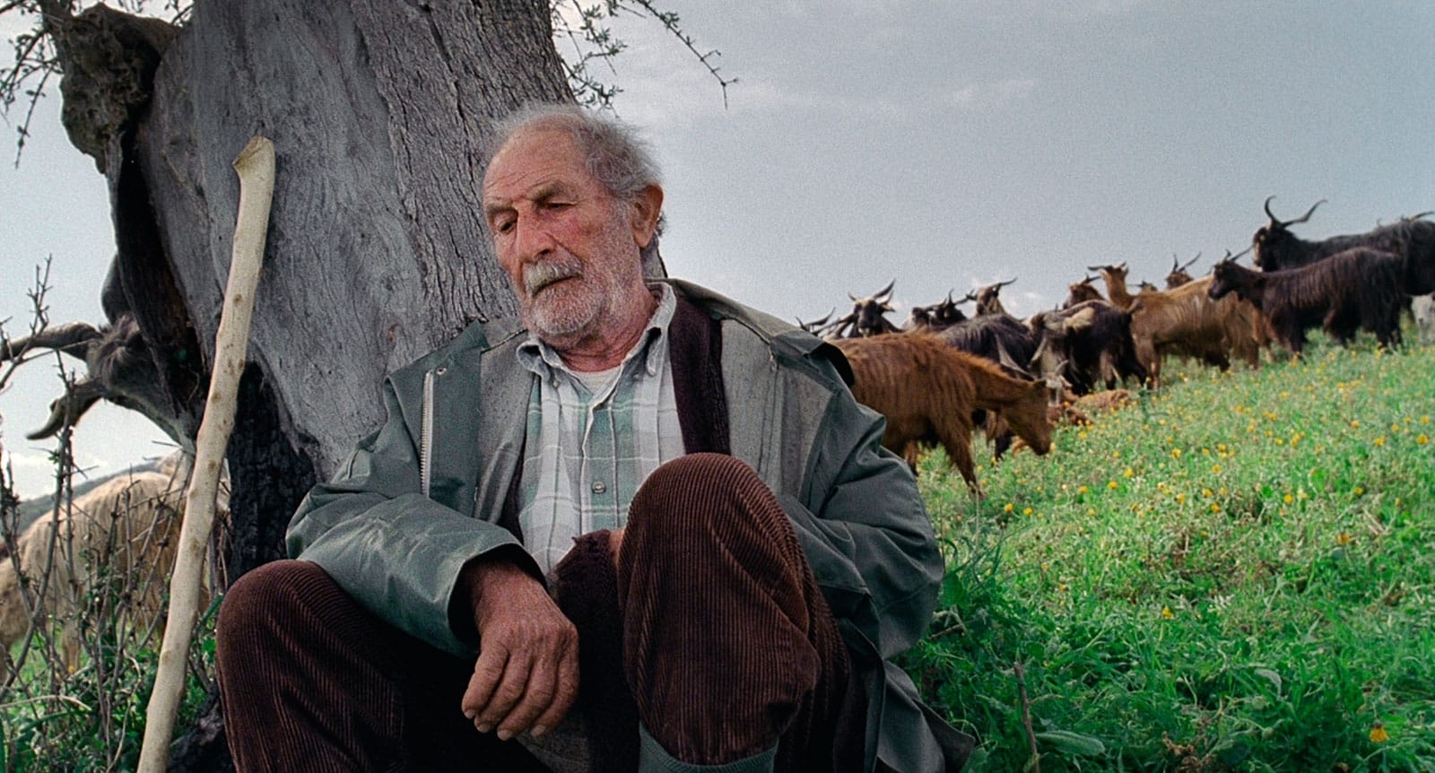 Italian director Michelangelo Frammartino uses the barest of means to communicate a cyclical view of growth and life. Though the film lacks a strict narrative, the dominant driving force of the story and the philosophy is nature. More specifically, it’s the Calabria region in the south of Italy that plays the part, a mountainous area where the film’s tiny walled town is perched. Quattro Volte‘s first protagonist is a lone goatherd, an old Italian man whose craggy features often come to reflect the wrinkled nature around him. While the character, played by Giuseppe Fuda, goes about his daily routines of treading through the hills with his goats, a slow camera does leisurely pans across brushy green vistas while paying equal attention to the goatherd’s face and his slow progress through the natural world.