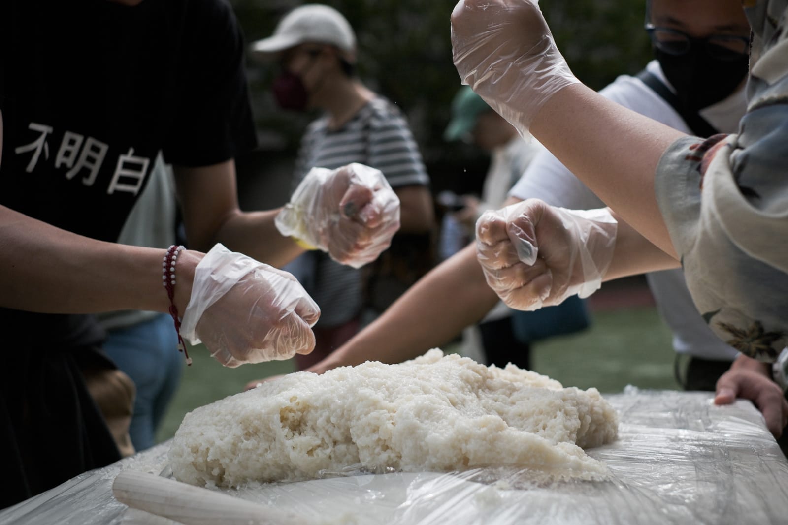 “Ciba, a southern Chinese rice cake, is made by repeatedly punching steamed sticky rice,” CAO Collective told Hyperallergic. The performance, “rooted in queer/feminist ethics of care,” invites community members to punch the rice into cakes and then share the finished products.