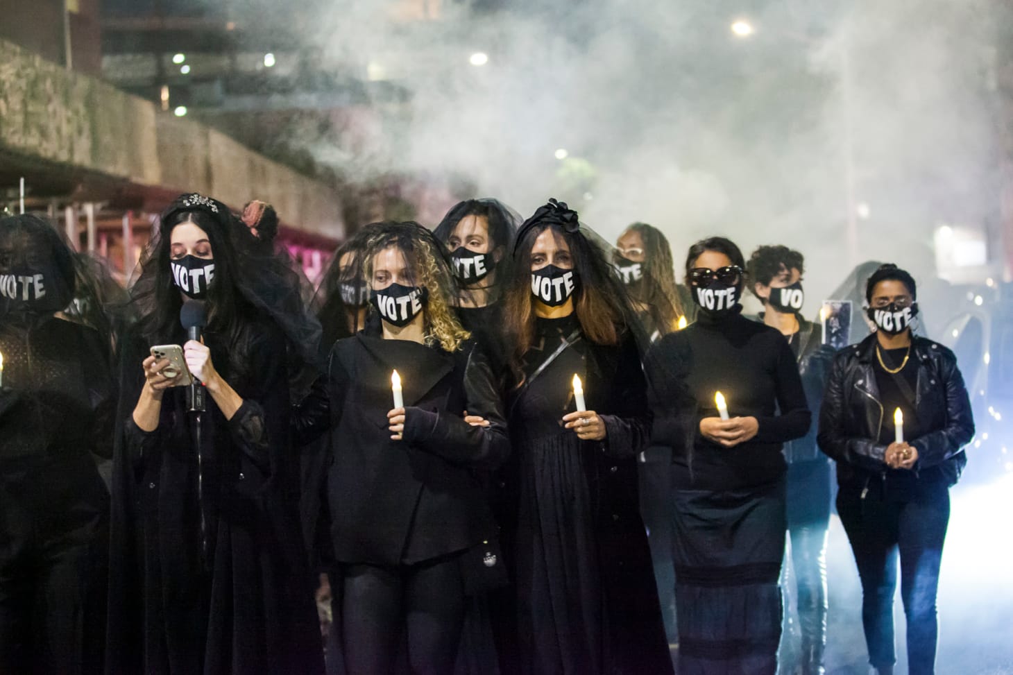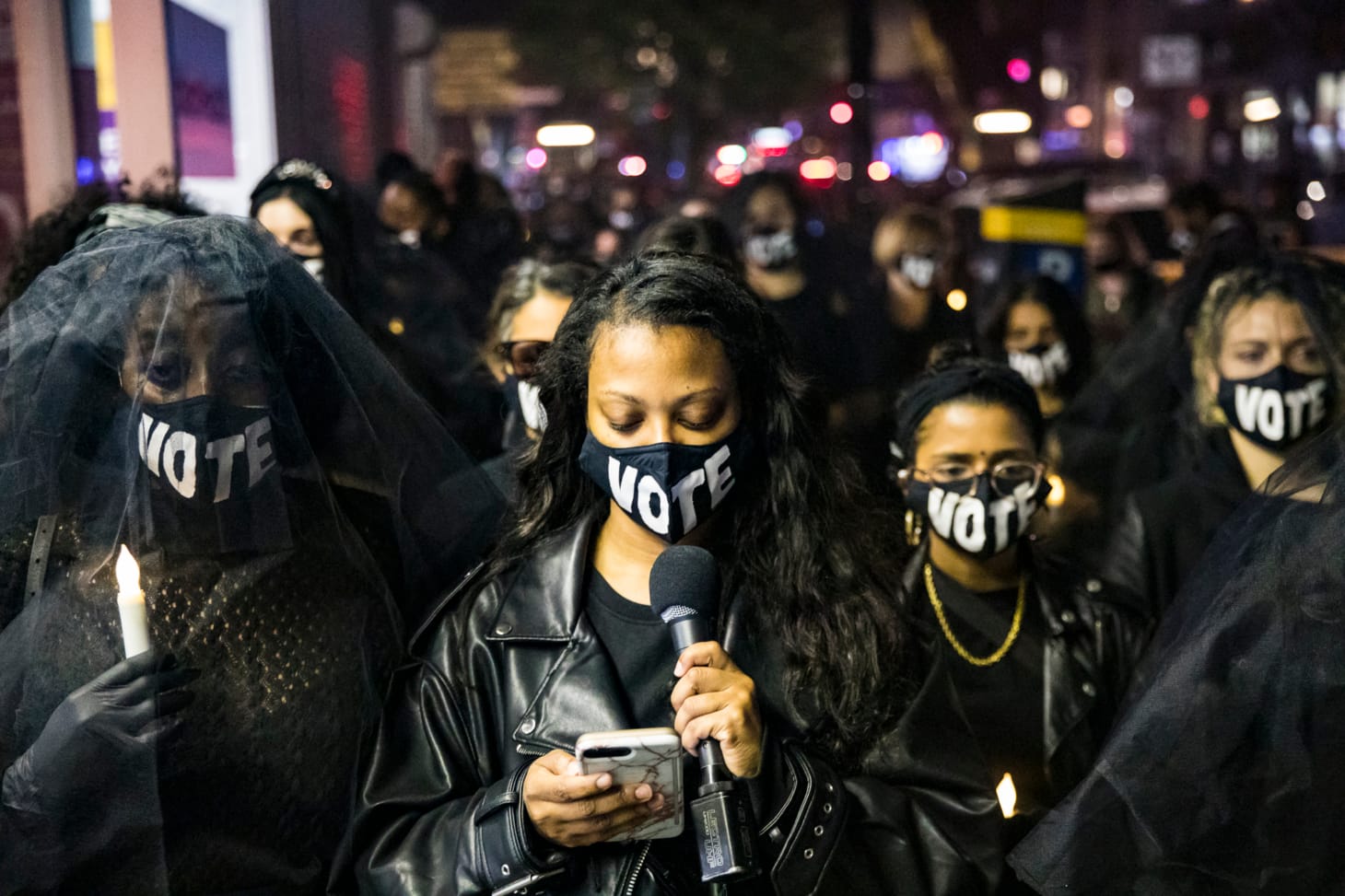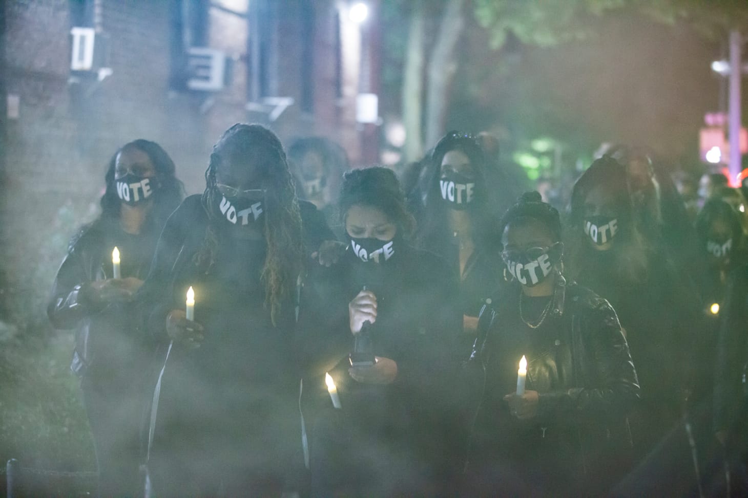 But amid the pain and loss, the demonstrators hoped to convey a message: “Vote.” Printed in white block letters on the black masks worn by each of the mourners, the imperative was like a small but meaningful symbol of redemption to the hundreds of thousands of victims whose deaths may have been prevented under a different administration.