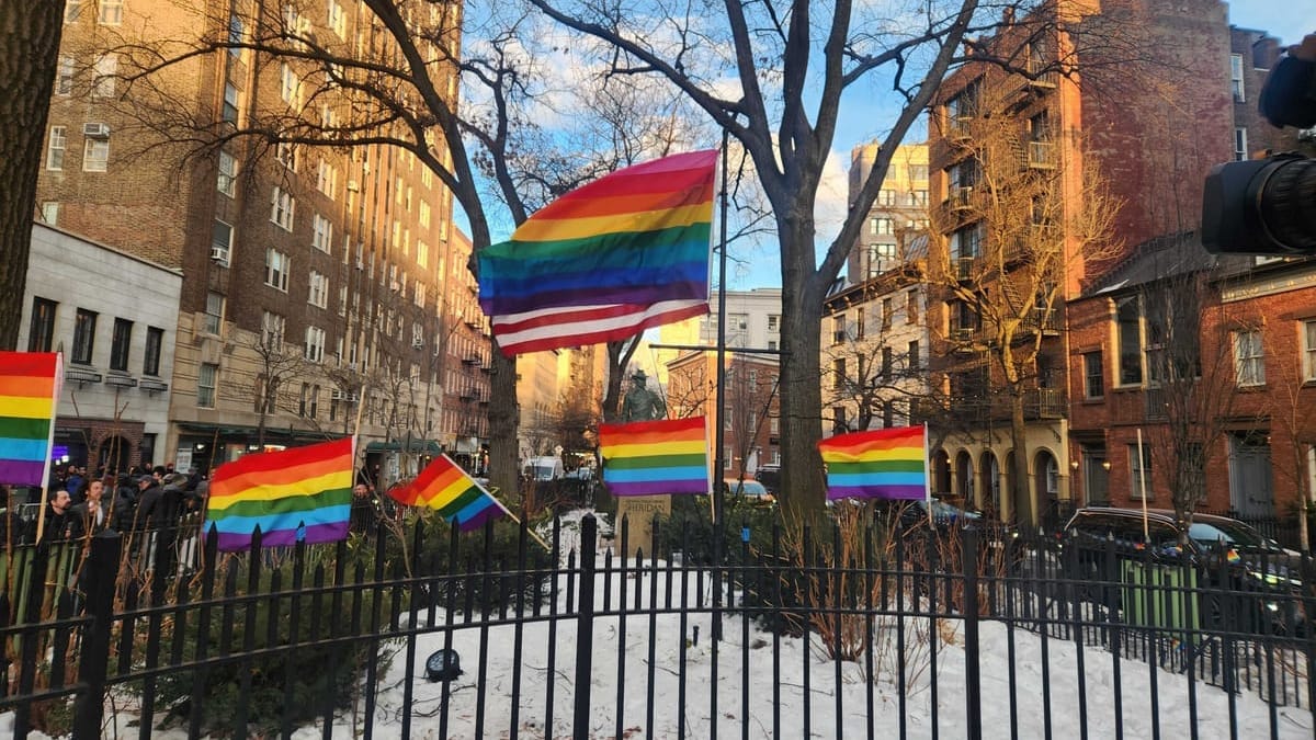 - On Thursday, hundreds of New Yorkers raised the Pride flag at Stonewall National Monument after it was removed at Trump's directive.