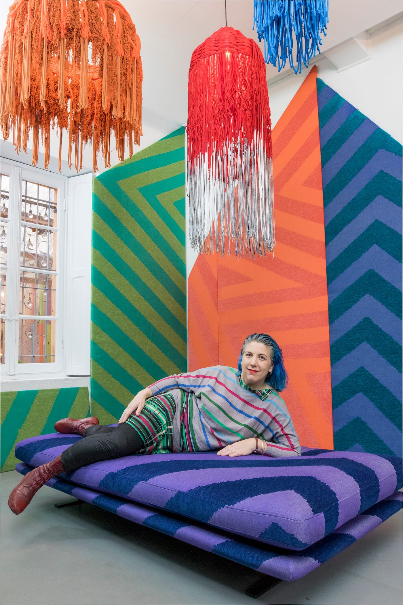I work fluidly between art and design with an emphasis on fiber and textile media. Vivid palettes, dynamic patterning, and the transformation of yarn and fabric into multidimensional forms are some of the ways I create pieces. By embracing abstraction, optics, and extreme material contrasts, I explore the boundaries between painting, sculpture and installation. Intuitively, I try to express the energy, emotion, and the visceral qualities of existence.