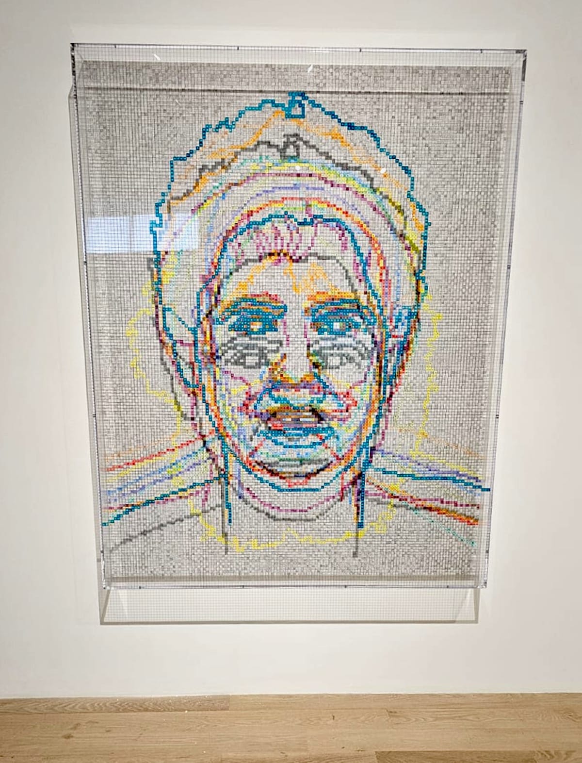 Charles Gaines's "Faces 1: Identity Politics, #10, Edward Said" (2018), one of 60 pieces included in his survey exhibition Charles Gaines: 1992–2023 at the ICA, belongs to a series of paintings on gridded clear acrylic panels rendered according to the artist's distinctive numerical method. The 12 portraits in the series trace the history of revolutionary thought, advancing chronologically from Aristotle to author bell hooks and including Said as well as teacher and activist Maria W. Stewart, philosopher Karl Marx, and Afrocentrism theoretician Molefi Kete Asante, among others.