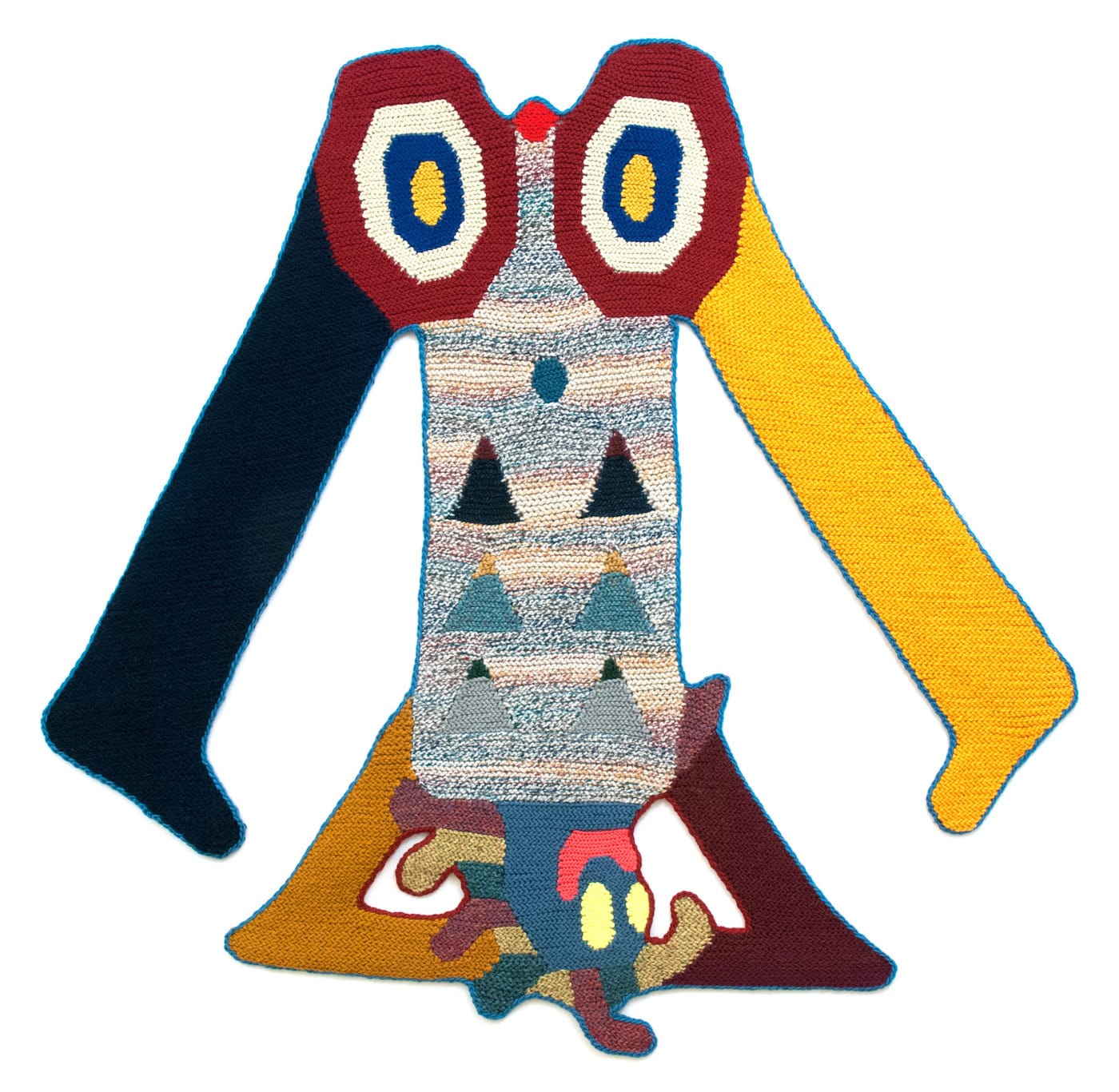 Adams’s painting resonates with Caroline Wells Chandler’s “Strange Attractor for Agnes Martin” (2017), which hangs in the gallery’s display window on Broad Street. (Chandler’s work is not part of Quicktime.) Chandler, who trained as a painter, but has recently been working on large crochet figures that explore various dimensions of gender, depicts a female figure in crochet, seemingly bent in half at the waist, exposing her vulva. The difference, of course, is that Adams’s work involves a female saying something to a male, while Chandler references lesbianism by way of Agnes Martin. Rosenwald-Wolf’s decision to display Chandler’s work in their Broad Street window, in affiliation with Lord Ludd, is a smart, visible challenge to gender norms in the era of Trump.