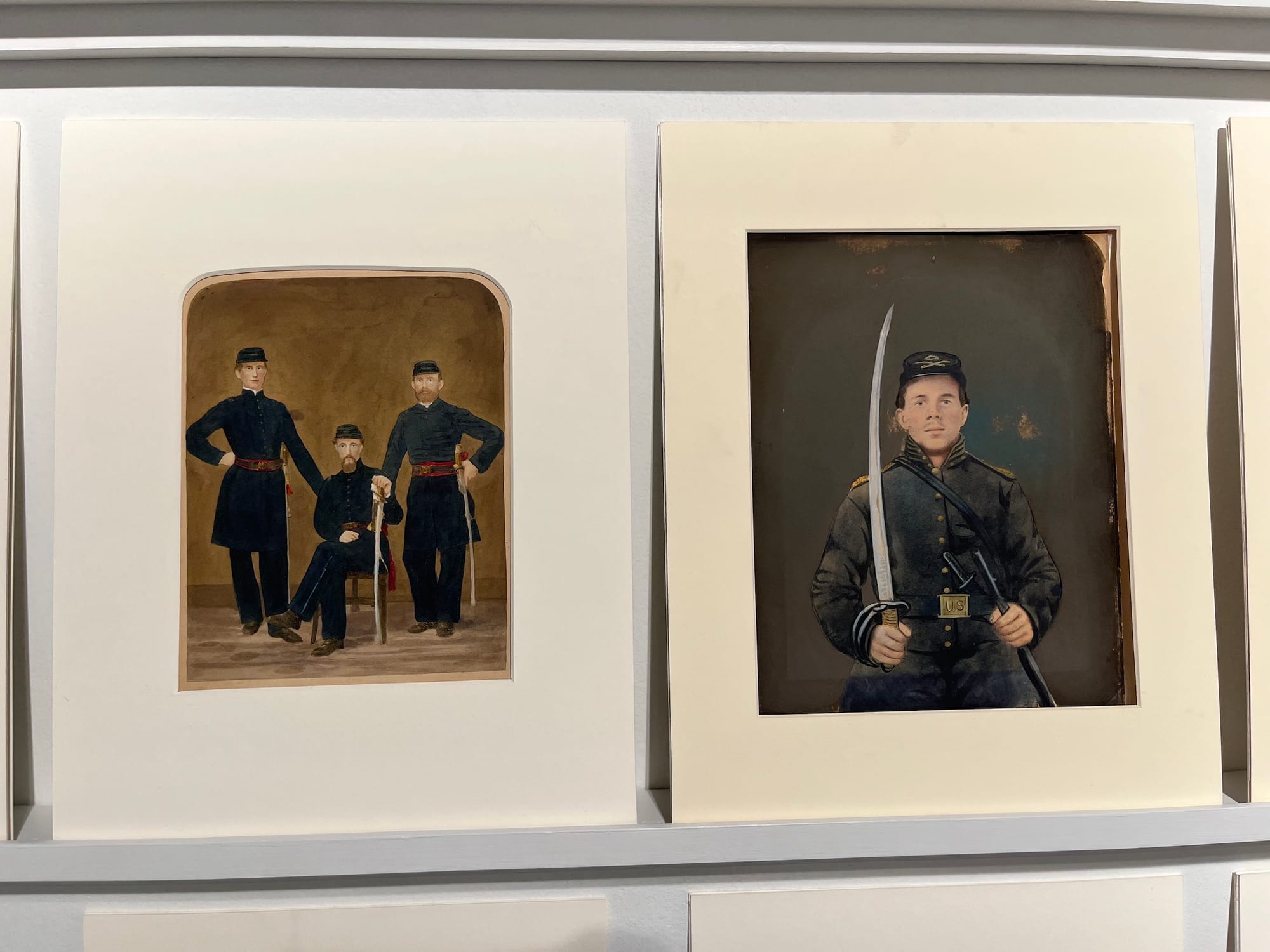 While Ushioga's work conveys confidence and self-assuredness, a collection of photographs on the other side of the fair — from the Southhampton-based Gary Edwards Gallery — shows the opposite. Edwards talked through the collection of Civil War photographs he hung on his section's largest wall. The gallerist pointed to the grouping's most eye-catching work: a photograph of a teenage boy who had recently enlisted. Edwards said that new soldiers would have their picture taken in a studio after joining the army. The boy looks "nervous," according to Edwards, who pointed out that the sword he's holding looks like a prop. (In contrast, more seasoned soldiers pose confidently in a portrait hanging next to the boy's.)
