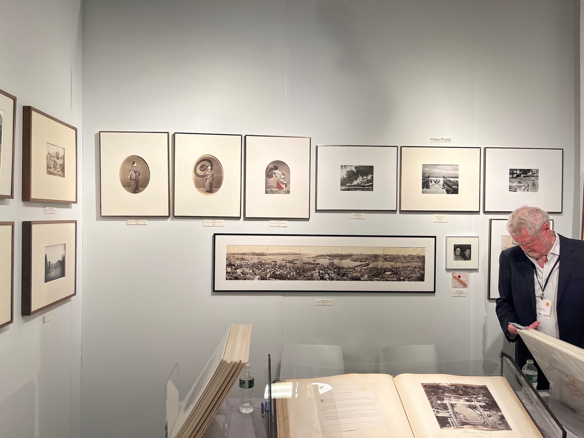 While Ushioga's work conveys confidence and self-assuredness, a collection of photographs on the other side of the fair — from the Southhampton-based Gary Edwards Gallery — shows the opposite. Edwards talked through the collection of Civil War photographs he hung on his section's largest wall. The gallerist pointed to the grouping's most eye-catching work: a photograph of a teenage boy who had recently enlisted. Edwards said that new soldiers would have their picture taken in a studio after joining the army. The boy looks "nervous," according to Edwards, who pointed out that the sword he's holding looks like a prop. (In contrast, more seasoned soldiers pose confidently in a portrait hanging next to the boy's.)