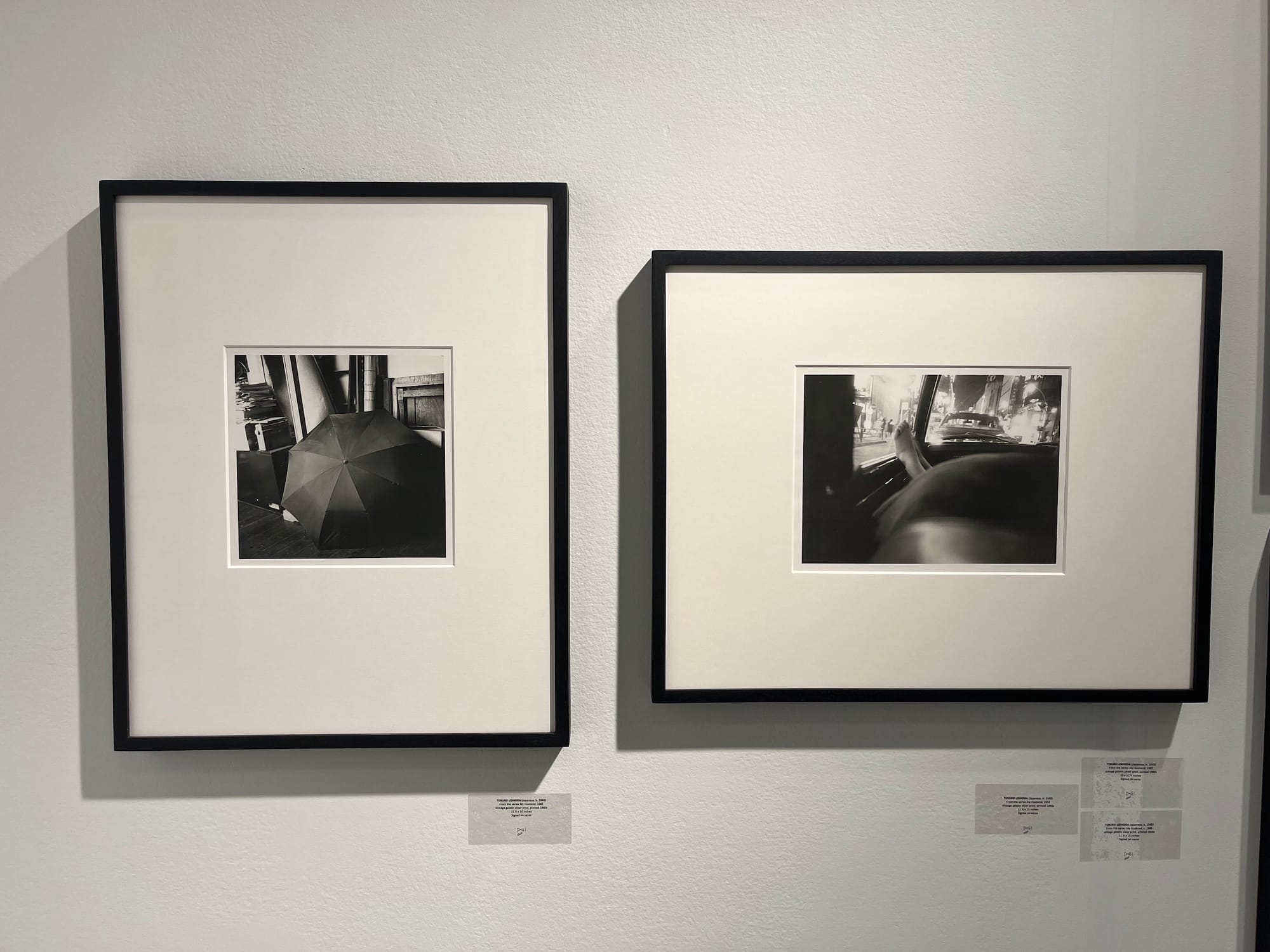 "She found that the camera could be a weapon to get rid of something from the subject," Takahashi explained. "Two years later, she got pregnant and gave birth." On the adjacent wall, Ushioda's later work portrays a calmer time in the artist's life, after she pivoted away from street photography to take care of her child. A kitchen stove, a pair of feet on the dashboard, and an umbrella consume the photographs' frames.