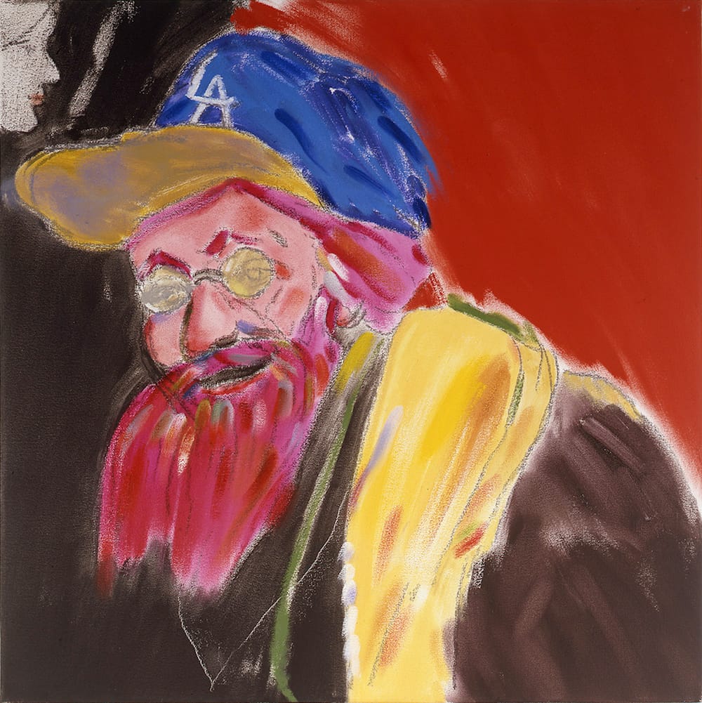 At a certain point, Kitaj seems to want that quickness in oil paint, perhaps in an attempt to undo the mastery he had gained in pastel. Always drawn to using a dry brush, it seems to have gotten even drier after he left London and moved to Los Angeles in 1997. Known for working on paintings for years, I do not think that he felt he had that luxury after turning sixty-five, which coincided with his being grief-stricken and resettling in Los Angeles, where he had first met Fisher in 1970.