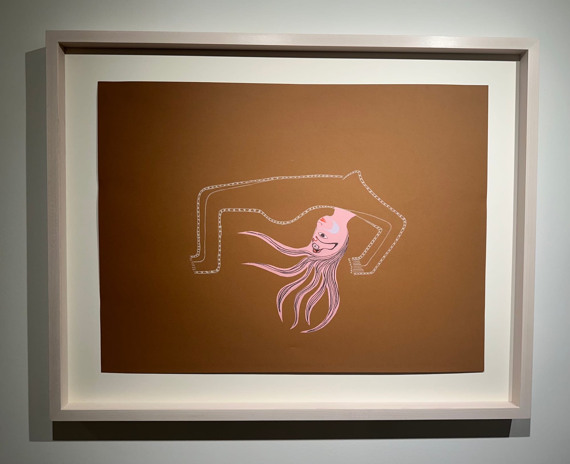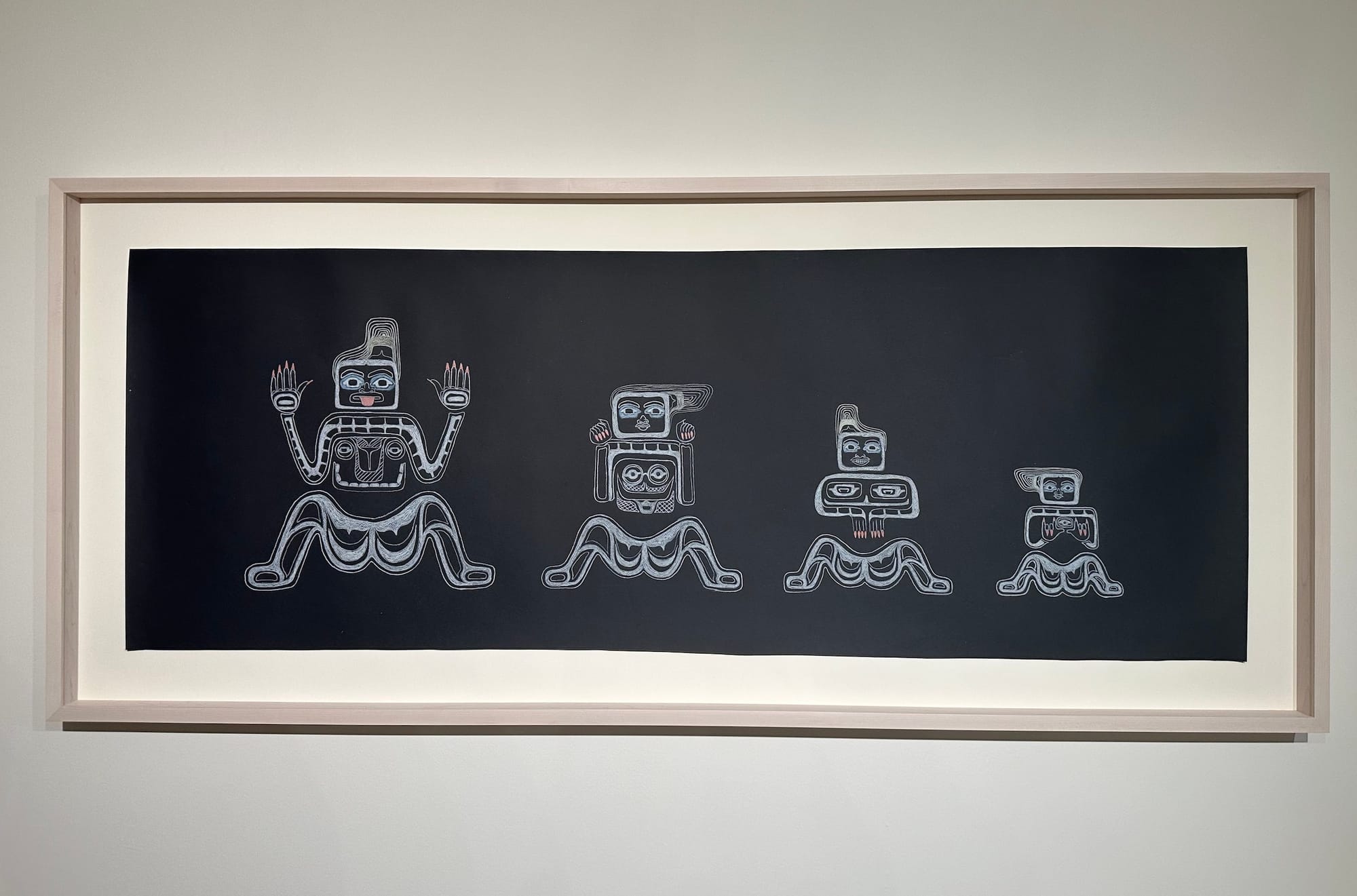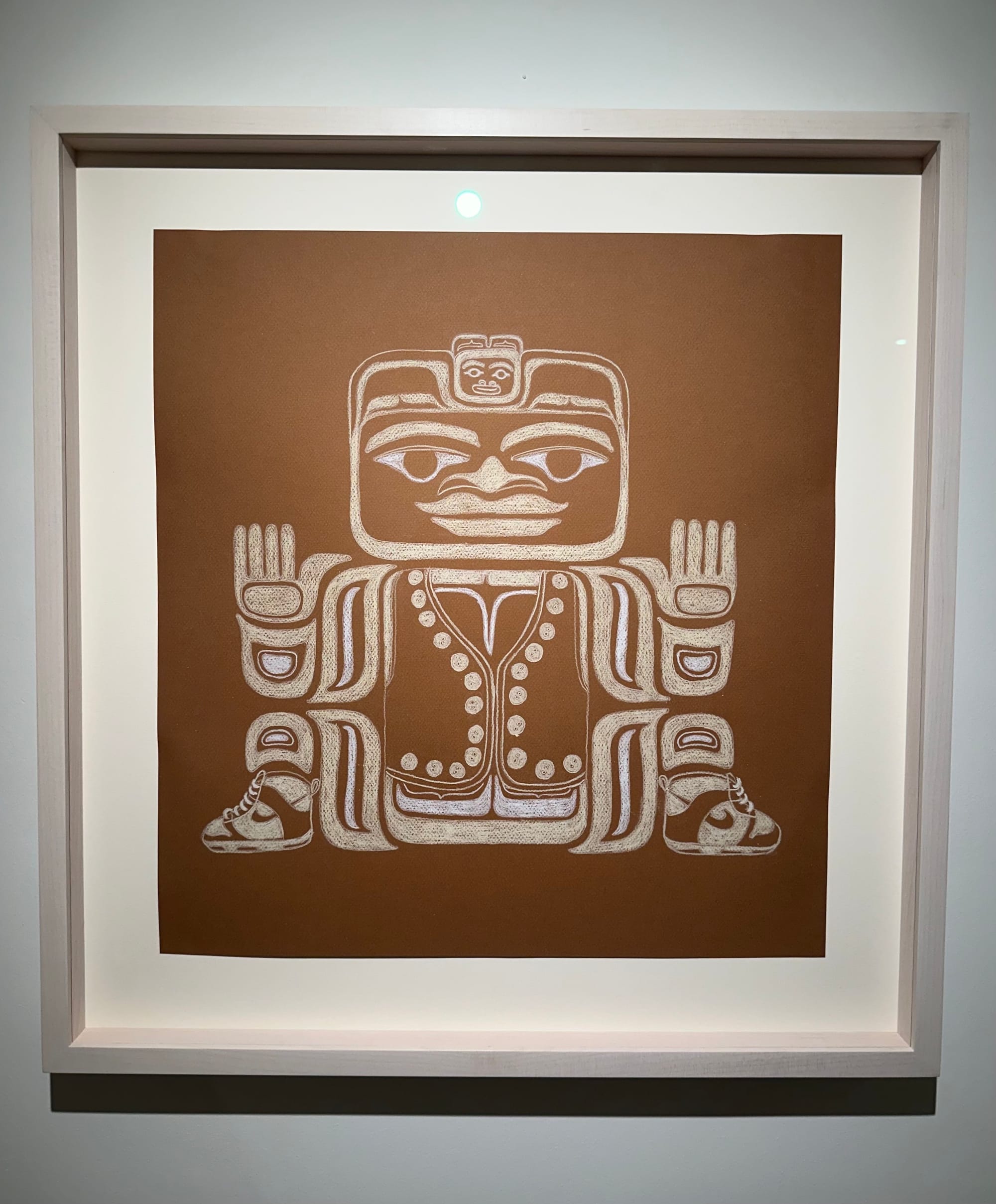 Martin’s effortless blend of humor and tenderness is perhaps best exemplified by a striking drawing of a masked figure wearing a pair of Converse and a sweeping shawl adorned with formline motifs, titled “She's a 10 but she boils herring eggs until they're all white and rubbery” (2024). But the artist serves a more filling meal in this exhibition; and, needless to say, she ate.