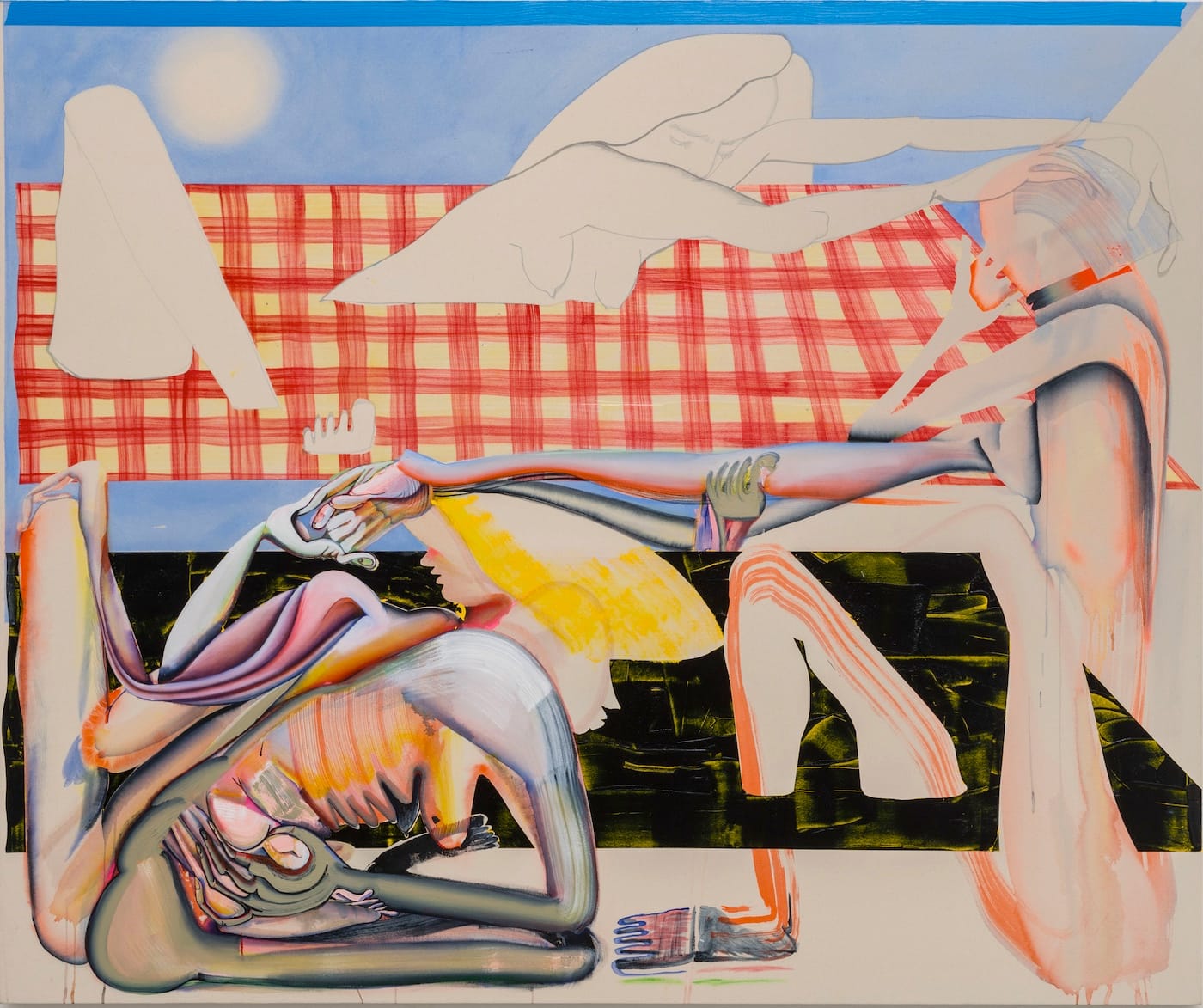 We have 10 painters here, and three of them, Cecily Brown, Ryan Mosley, and Tschabalala Self, are very good indeed. The mood of the show is a fairly nonstop frenzied one from first to last, because there is so much coming at you in all directions these days. Every source available — printed, digital and even things seen by the human eye, that most ancient of tools — gets tossed into the painter’s mix.