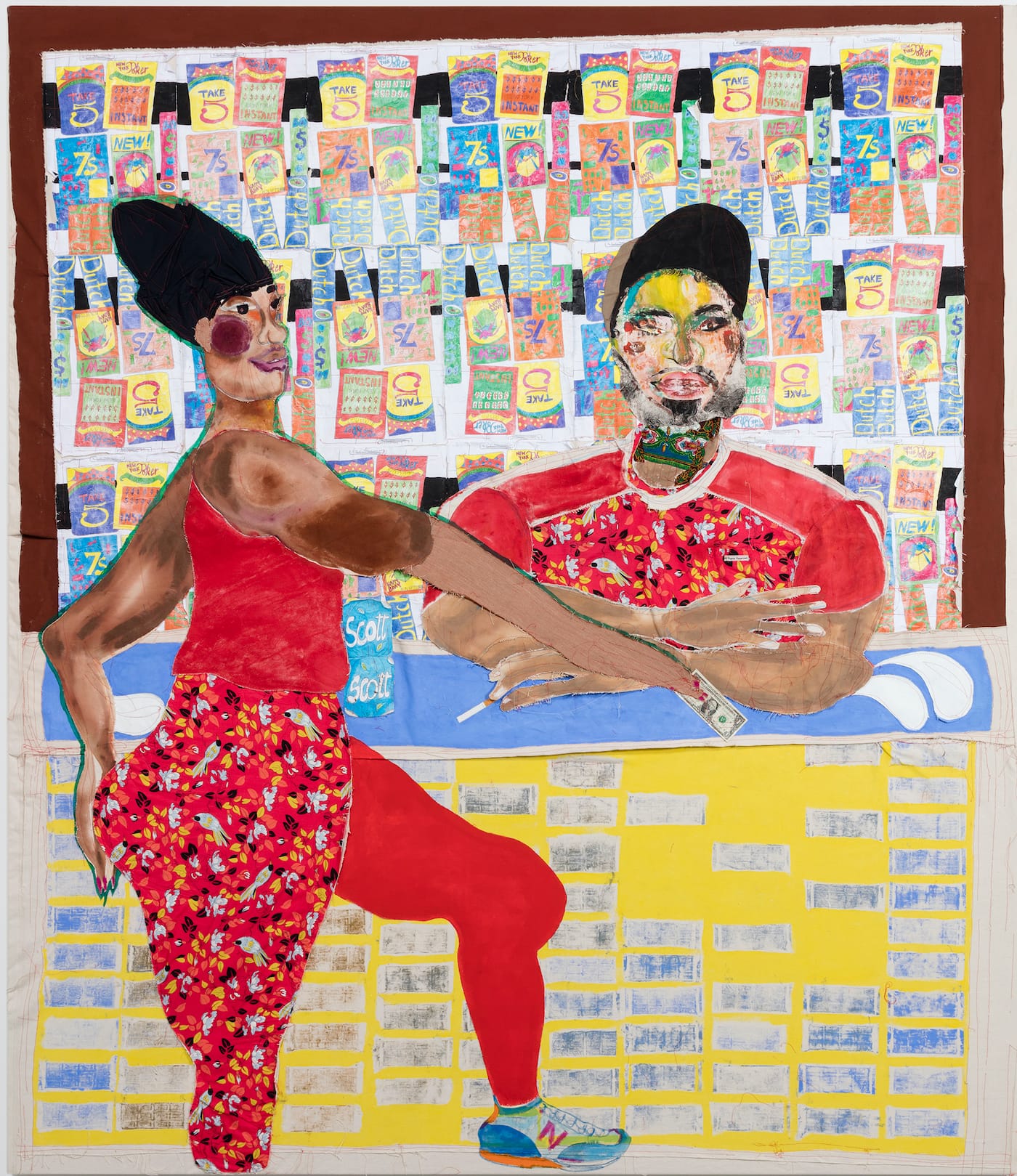 Tschabalala Self’s lovely, shrieky, rackety mixings of paint and collaged fabrics are the only works in this show that do not feel weighed down by the burden of the various kinds of anxiety that seem to buzz about here so frenziedly, ranging from the fact of being a painter at all, to the horrible uncertainties surrounding the very idea of the human condition in a nasty, predatory world such as this one.