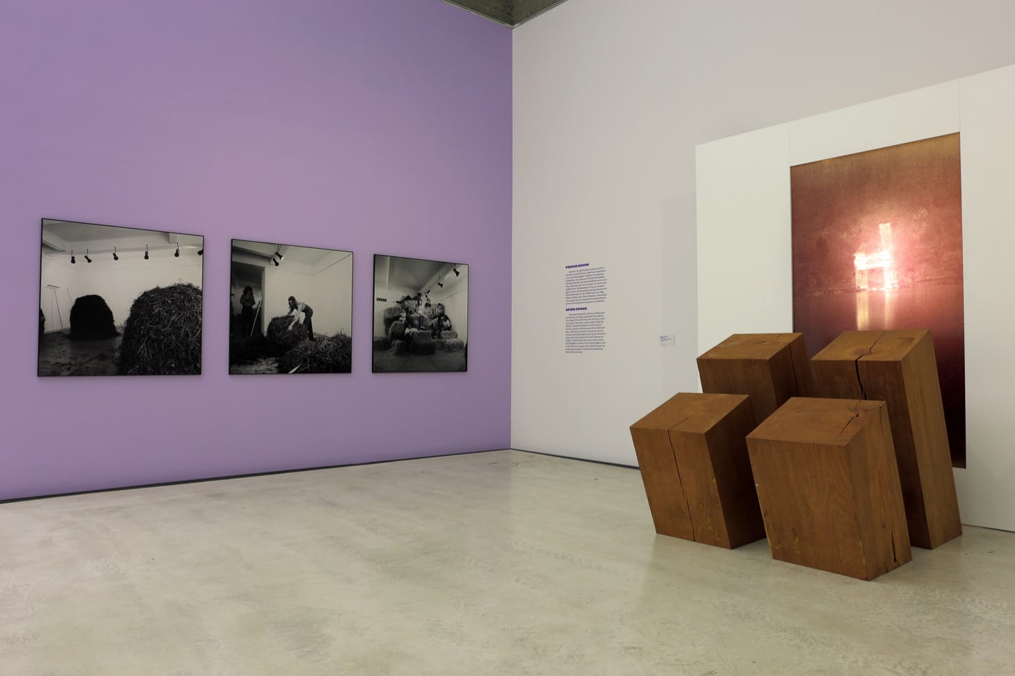 Certain performative media, like dance, were sharpened with a subversive edge by Hanne Wandtke in Dresden; in Poland Zofia Kulik translated her sculptural work into photographic images that could only be viewed as slideshows while Budapest’s Dóra Maurer released photography from the narrative cage and let it play free in time lapse with elementary shapes and symbols. Katalin Ladik who belonged to the Hungarian minority in Yugoslavia, experimented both with language by breaking it down into abstract sounds, and social norms around the male gaze by doing performances in the nude as well as in lacy underwear worn over skin-hugging black clothing. Upstairs, the functions and restrictions of open expanses like rolling meadows and well-tended parks were both interrogated and subverted by Czechoslovakia’s Magdalena Jetelová and Zorka Ságlová as they reconfigured landscapes with wooden blocks or baby diapers.