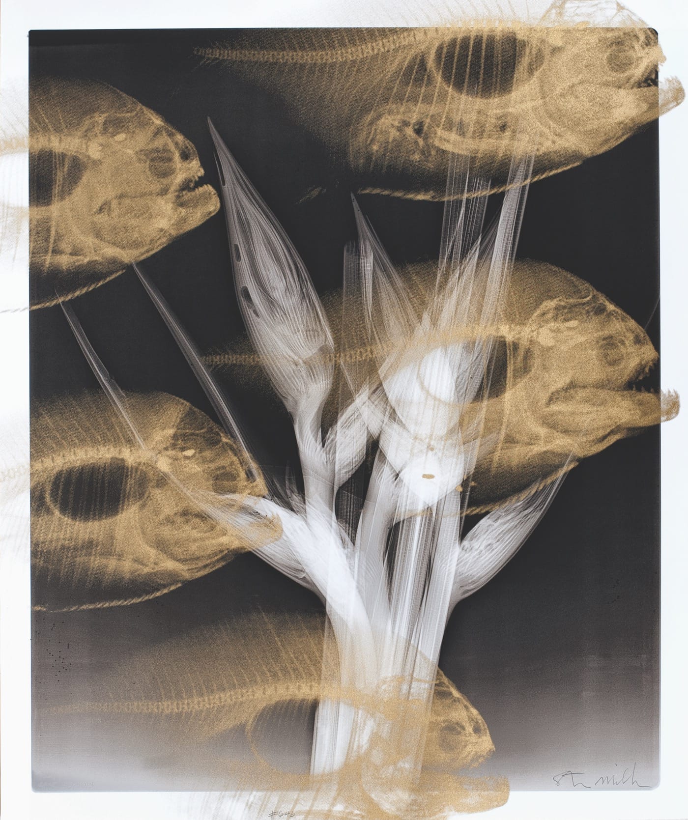 It’s this compelling theme that Steve Miller uses to ground his book Radiographic: X-ray Photo Inventions. X-ray photography has been used to make art, only a few years after 1895, when the German scientist Wilhelm Röntgen discovered that electromagnetic radiation could affect photographic film and provide images of dense materials surrounded by less dense matter. The foreword to the book, written by a science writer and academic, Carl Safina, guides the reader toward that penumbra space where science and art overlap, urging serious consideration of the link between the natural world and the world of aesthetic appreciation. The link Safina says is in our ecology and the place we as humans have in it: