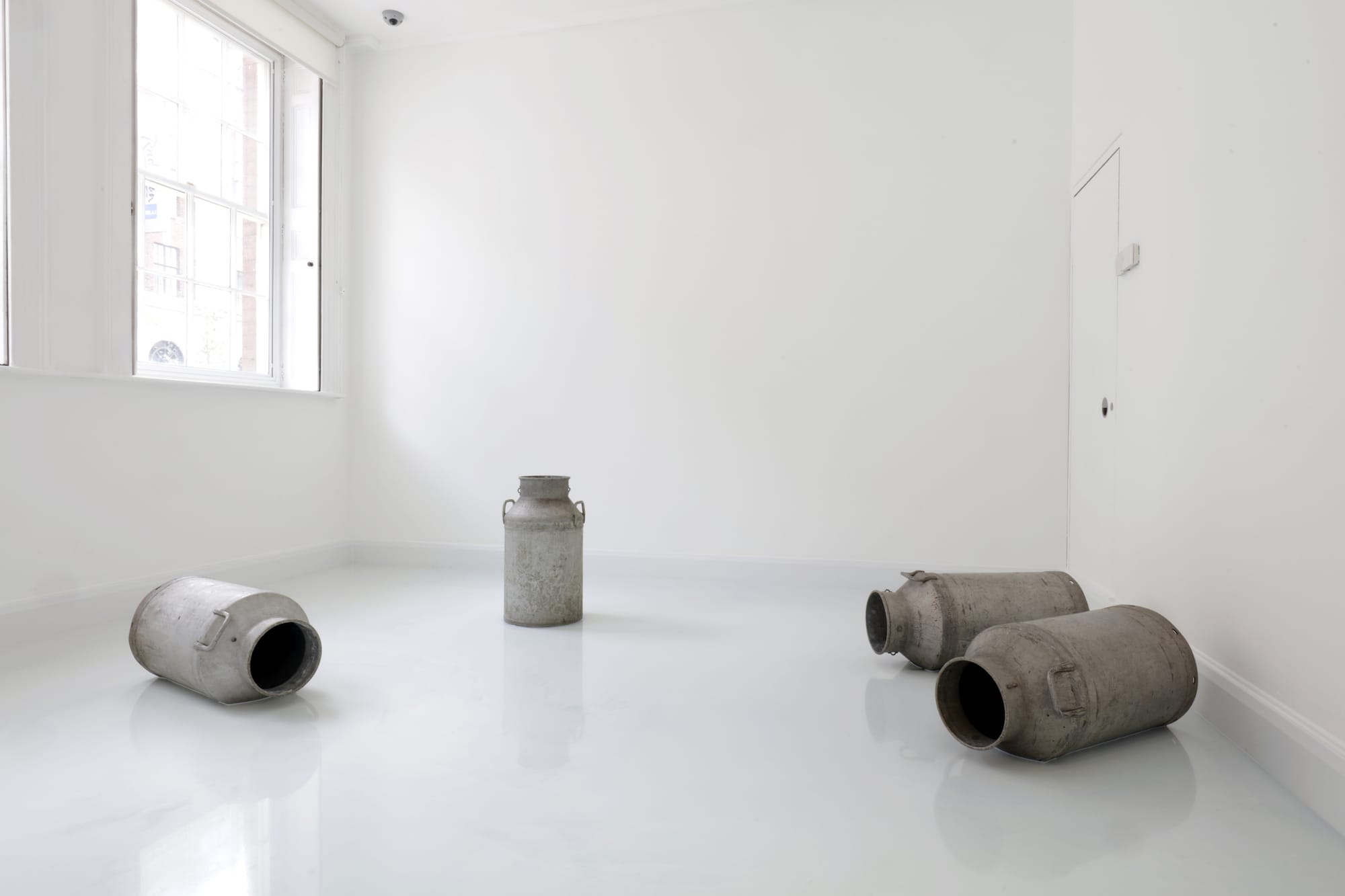 LEEDS, England — Light streams obliquely through tall windows, diffusing over the still, slightly dusty surface of a gallery floor flooded with milk. Four old-fashioned milk churns lie overturned or stand empty, as if forgotten about or abandoned in frustration. The liquid looks like marble or poured resin, turning the room into a gleaming white cube. There is a contemplative air to the space; the calm after a storm.