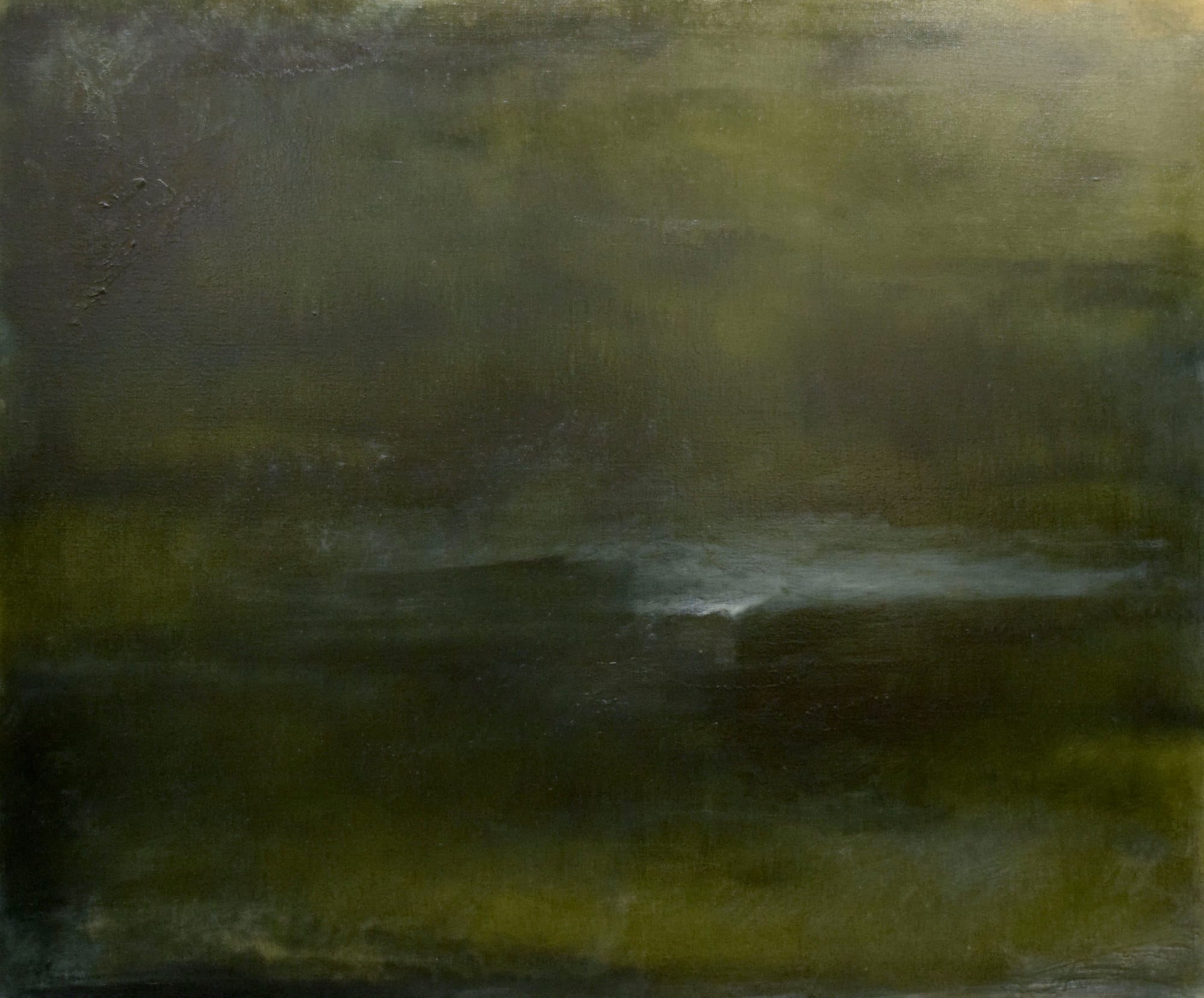 His use of an elaborately torqued grid that he devised enabled him to convey multiple vanishing points, which signified infinity, the beginning of an immensity that can neither be conceived nor comprehended. In “Night, Sea and the Rock” (2004), viewers are guided by the title to look at the ocean, waves, night, and a rock, yet they might feel that they are giving shape to indeterminate forms within an ambiguous abstract space — and this would also be true. He was driven to focus on the tension between the nameable and unnamable. Even when the form is more apparent, like the tree trunk in “Forest, Moon, Tree” (2014), the stripped trunk seems to be in a state of disintegration, as if the body is losing its shape and muscular structure.