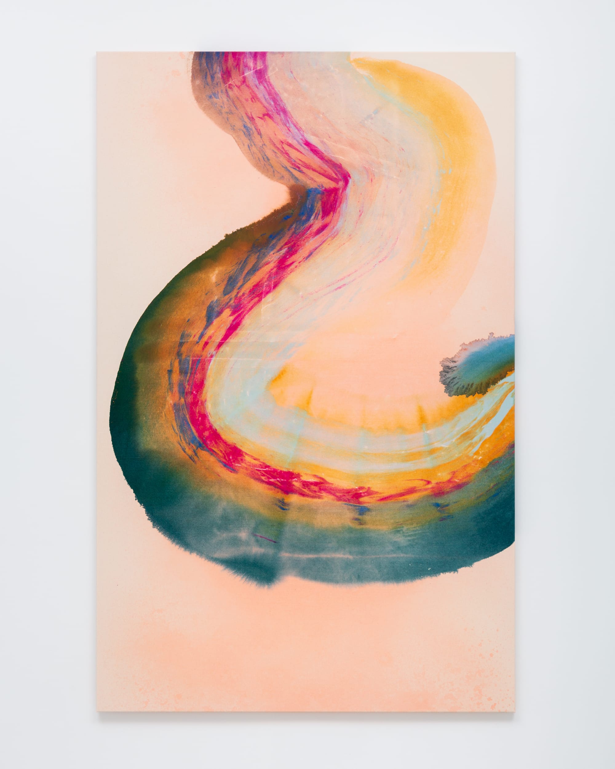 Ragna Bley, a Swedish painter based in Norway, works entirely on her studio floor, pouring gallons of thinned paint onto primed sailcloth. Much like the late Helen Frankenthaler, who treated the seas of Cape Cod as her muses, Bley uses vibrant hues of the natural world to measure emotional depths. Her latest exhibition at Downs & Ross, appropriately titled Soundings, finds Bley affixing these studies to the Lower East Side gallery’s walls.