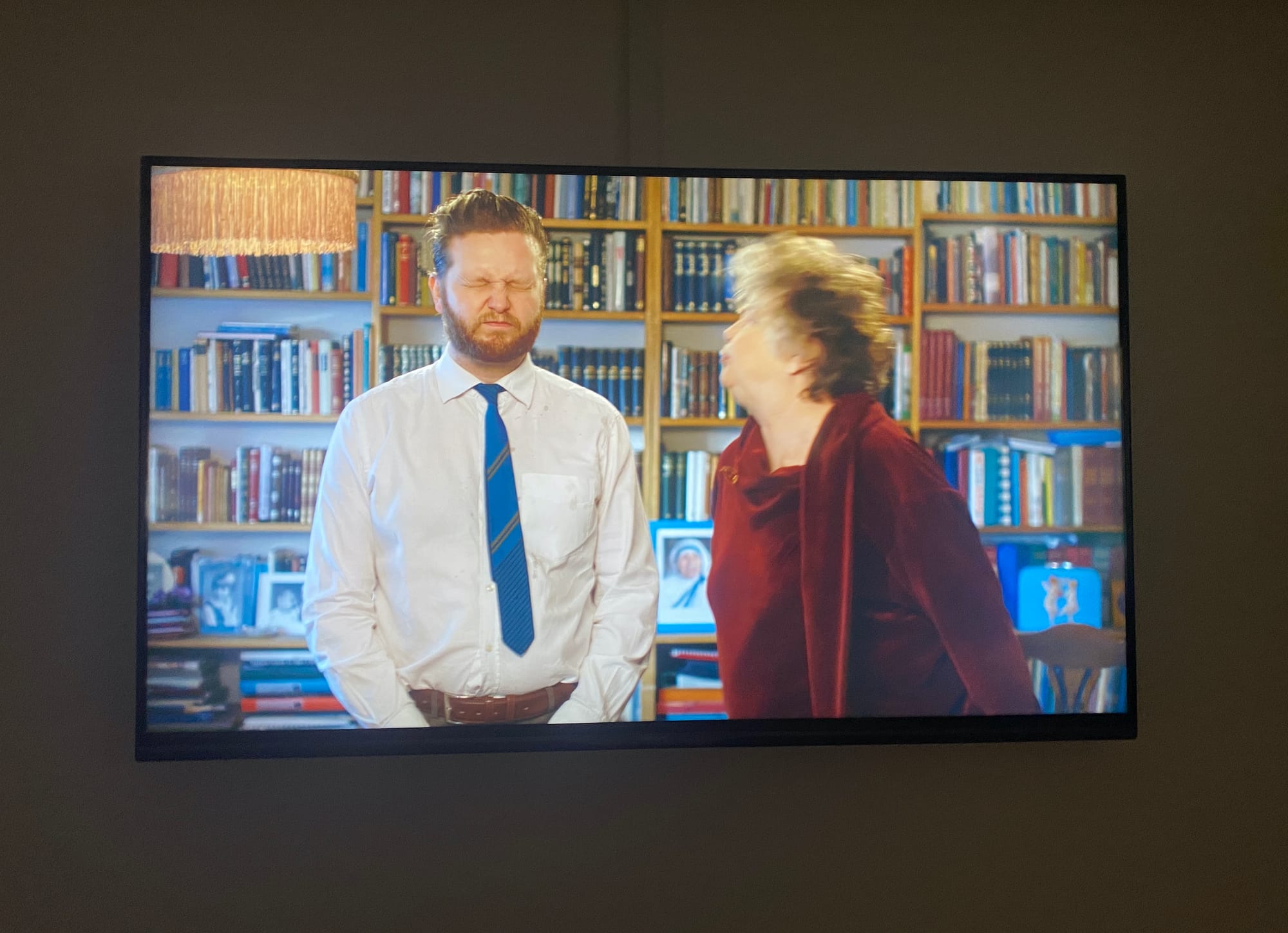 The installation references an argument between the artist, Ragnar Kjartansson, and his wife. It is also the name of Epic Waste of Love and Understanding, the first Scandinavian retrospective of the popular Icelandic artist, which opened this month at the museum. The show plays with power, humor, repetition, and self-effacement, sometimes looking outward at world leaders and other times looking at the absurdities of the life of a superstar artist.