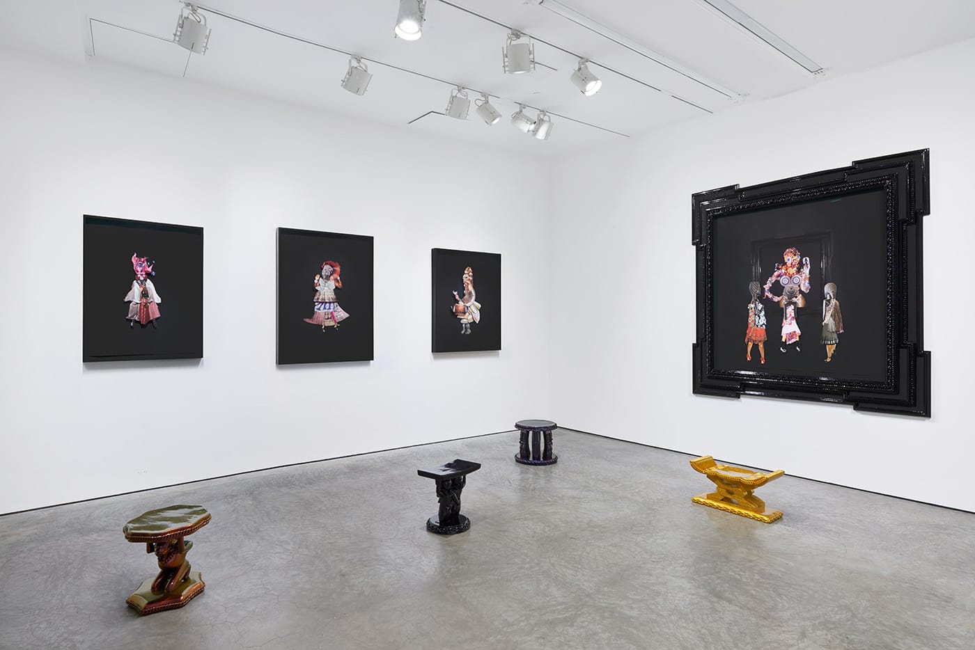 Viewers can connect to the bodies in the frames by sitting on a number of sculpted stools, which were fabricated in collaboration with a Brazilian firm and based on historical West African design styles. By inviting us to situate our bodies, as it were, in an African frame, Newsome underscores the significance of reconfiguring our vantage points.