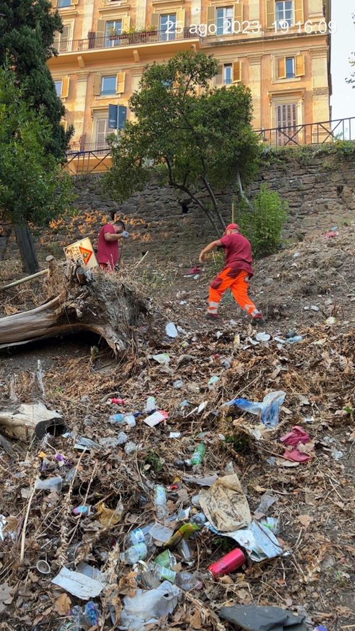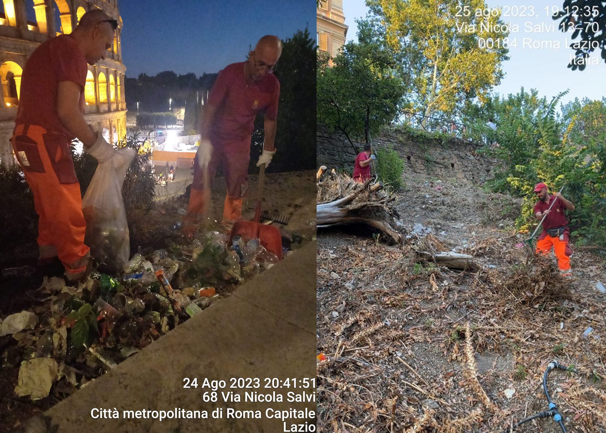 This weekend around the Colosseum, city workers cleared the heaps of discarded litter left behind by tourists. (photo courtesy Carlo Catalogna)