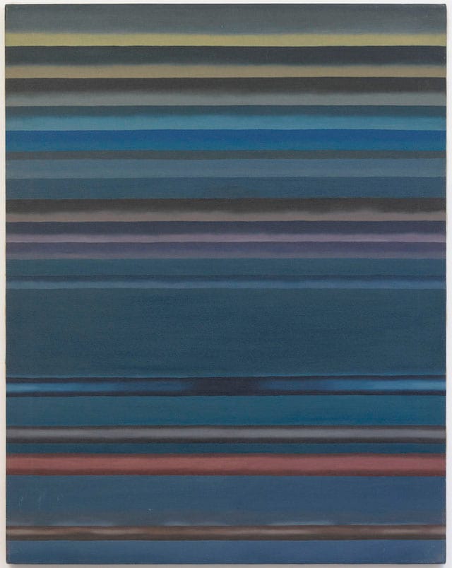 Influenced by surrealism, Yoshida dislodged his fragments from narrative and the easily irrational, which is why they feel so contemporary. There is something oddly repellant and inviting about these collections of mineral-like forms, a condition of otherness that cannot be assimilated. They refuse to be read literally, which is one reason why they have not gained the attention they deserve. At the same time, they seem as if they are things Yoshida found, but where he might have done so never becomes apparent. Finally, in these works and a number of stripe paintings done around this time, Yoshida collapses the distinction between abstraction and representation. Ultimately, they seem to comprise a painterly equivalent of a Cabinet of Curiosities, an archive of unknown and unknowable things. Here again, one sees Yoshida’s prescience; he anticipated so many of the ways artists would later gather and organize information.