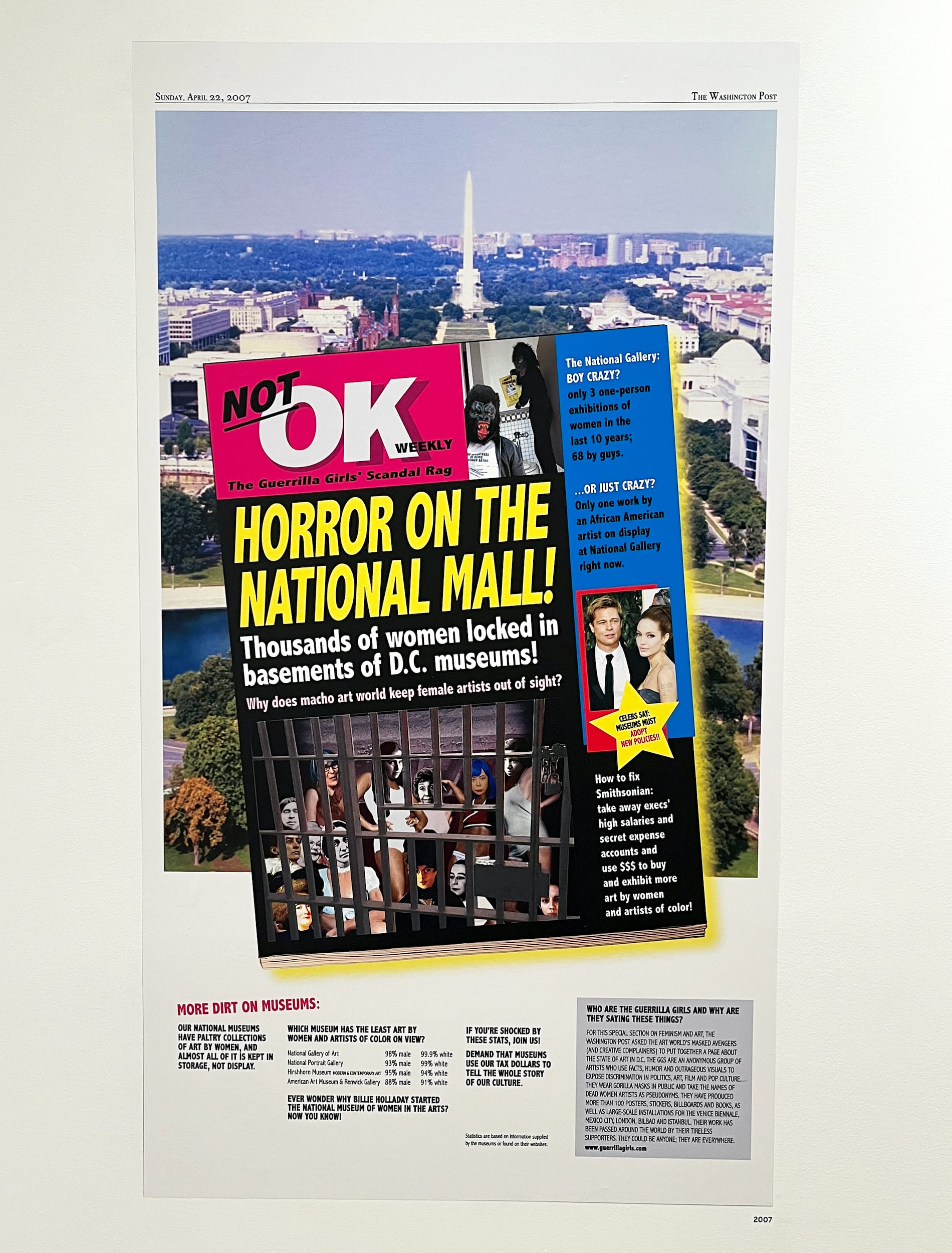 Discrimi-NATION: Guerrilla Girls on Bias, Money, and Art continues at Hannah Traore Gallery (150 Orchard Street, Lower East Side, Manhattan) through March 29. The exhibition was organized by the gallery.
