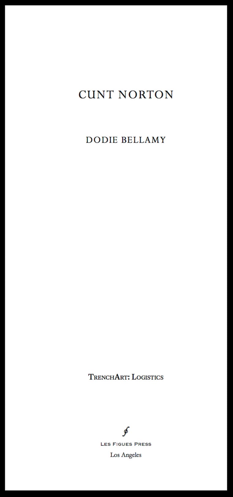 Dodie Bellamy’s Cunt Norton (2013) is published by Les Figues Press and is available from Amazon and other online booksellers.