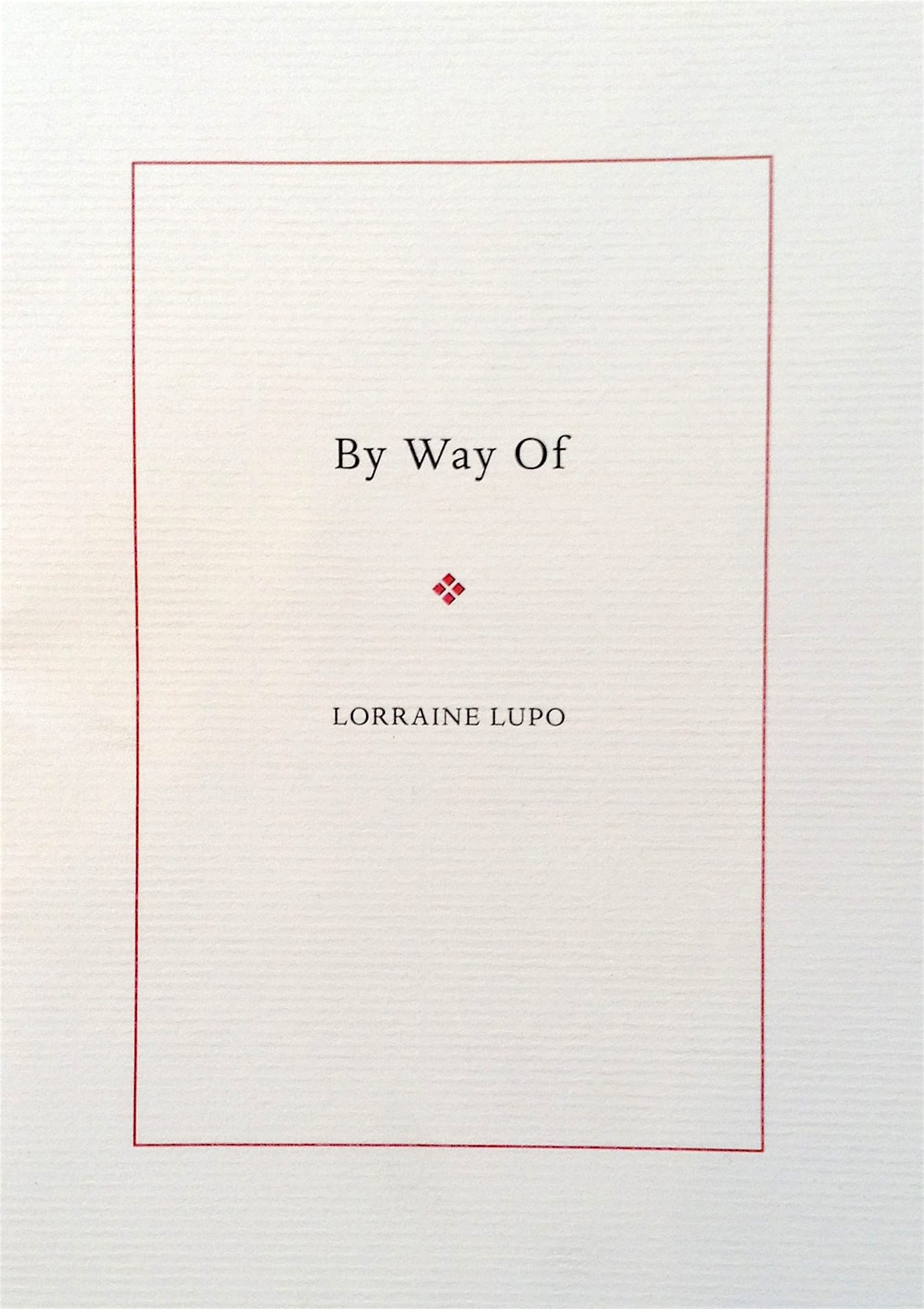 Lorraine Lupo’s By Way Of (2016) is published by Green Zone Editions (437 E. 12th Street, #18, NYC 10009).