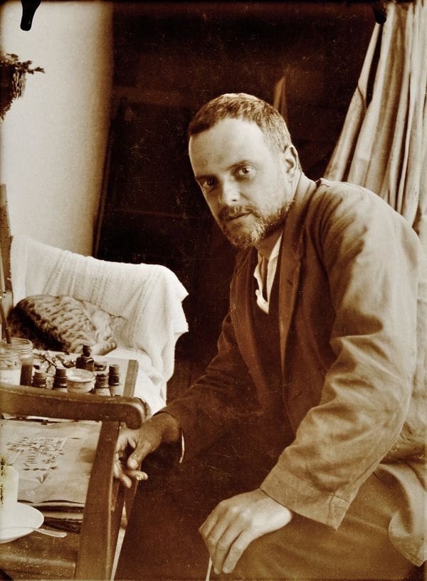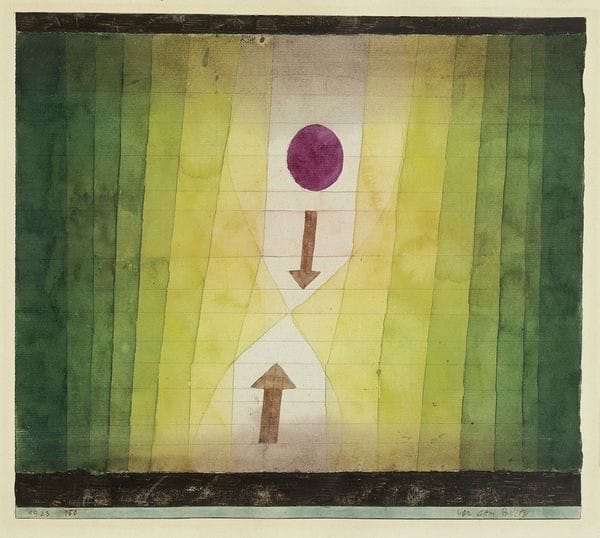 Born in 1879 in Bern, into a family of musicians, Klee was a natural and accomplished violinist and draughtsman. His earliest influences were the graphic illustrations of Franz Stuck and the musical tradition of Wolfgang Amadeus Mozart and Joseph Haydn. He was not, by his own accounts, a natural painter. It was not until a trip to Tunisia, in 1914, that Klee could make his famous declaration, “Color and I are one. I am a painter,” and produce his first abstract works.