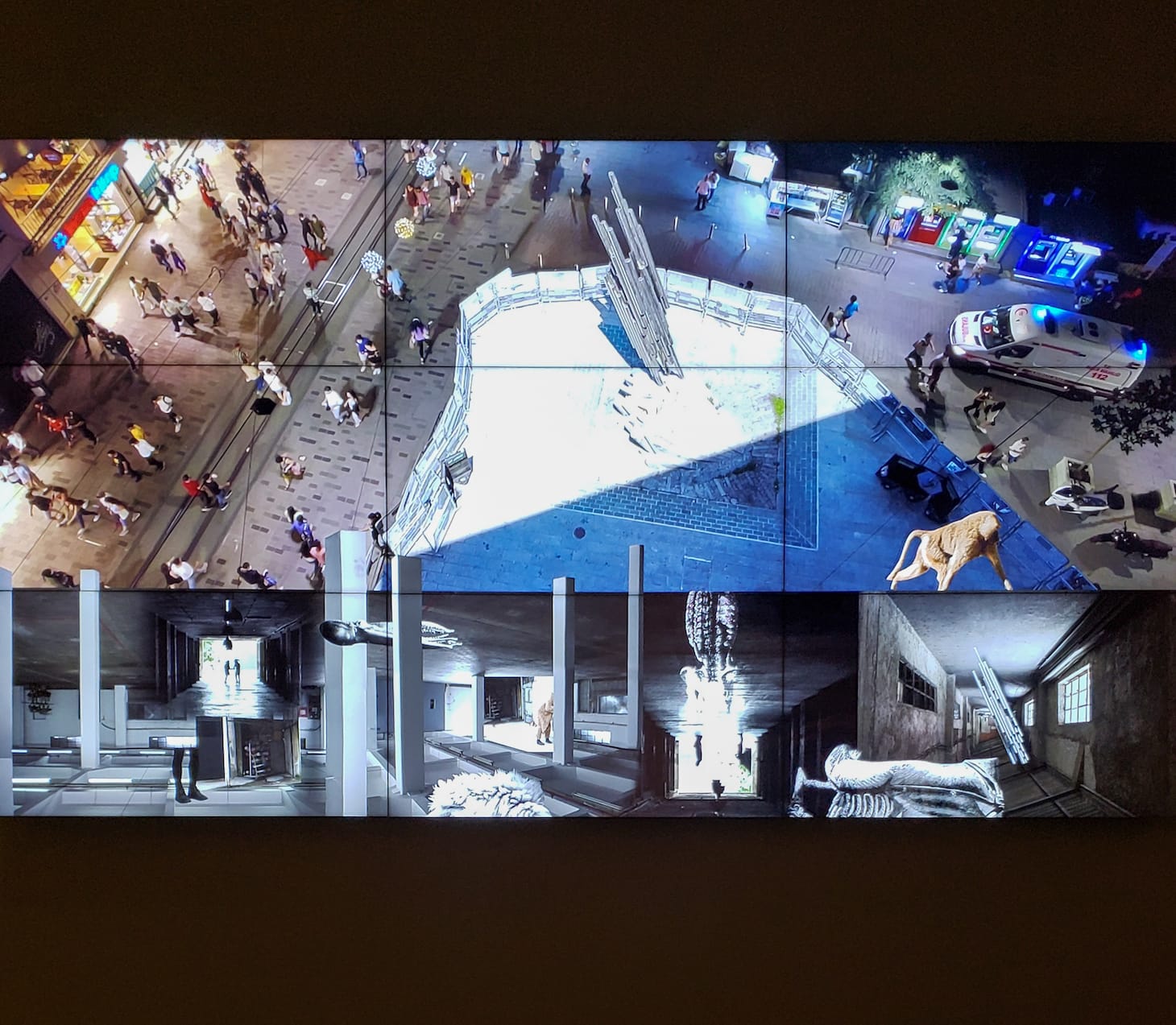 Inci Eviner's commissioned video, Agoraphobia, examines the adjacent Galatasaray Square. Currently cordoned off by the police, it has been the home of many protests, including those of the Saturday Mothers, who oppose Turkey's forced disappearances and political murders. For the last three years, the square has been blockaded by police and cannot not be used by the mothers, who have regularly staged some of the most critical civil disobedience sit-ins in Turkey. Using CCTV footage of the square, along with animations and video collage, Eviner playfully tackles policing techniques and the spectacle of state violence.