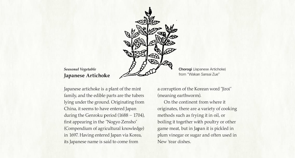 Designed with an interface that resembles a Japanese scroll, “72 Seasons” shows you one microseason at a time, updating about every five days so you really have to take the seasons as they arrive. Each comes with seasonal words, foods, activities, and illustrations often drawn from ancient Japanese texts or prints as well as explanations for their significance in Japanese culture. “The Bear Retreats to its Den,” for instance, which spans December 12 to 16, presents the Japanese artichoke as a seasonal vegetable and the sea cucumber as both seasonal fish and word. And the plump slug, as the app explains, is a favorite subject of haiku poets; one included example: The sea cucumber/speaks of its anguish/to the jellyfish.