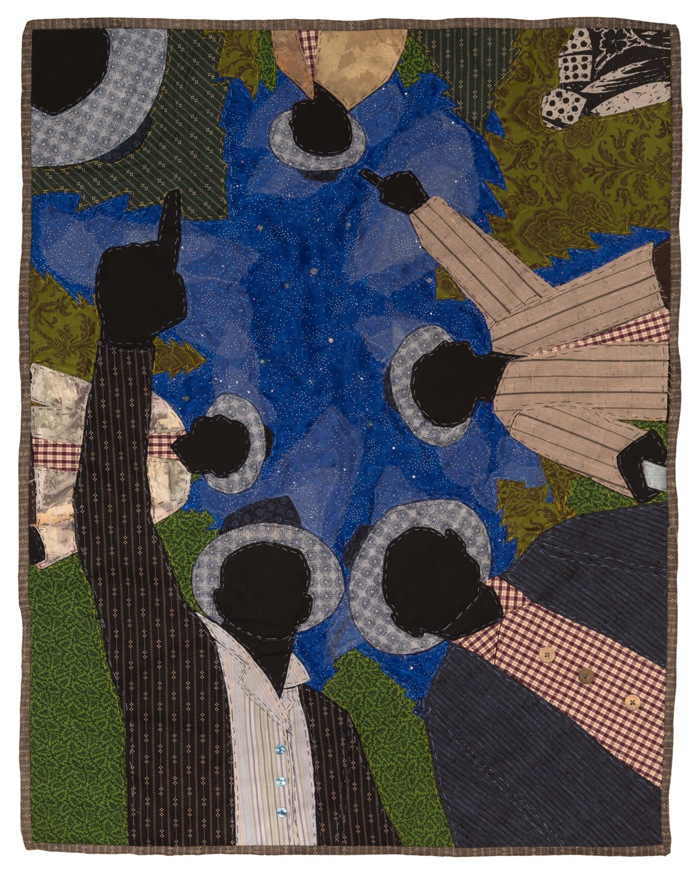 “I always think of a quilt as a painting first,” he said. He discussed bridging his background as a painter with his newer medium of quilting the evening of his BMA opening at a public talk with celebrated abstract painter Mark Bradford, whose 2017 Venice Biennale exhibition Tomorrow Is Another Day will come to the museum in September. (Towns will participate in another talk tied to his exhibition with Michelle Obama portraitist and fellow Baltimore painter Amy Sherald on May 30.) “In your hands it’s not just material anymore,” Bradford said to Towns during the event. “You made that material feel like figurative painting to me.”