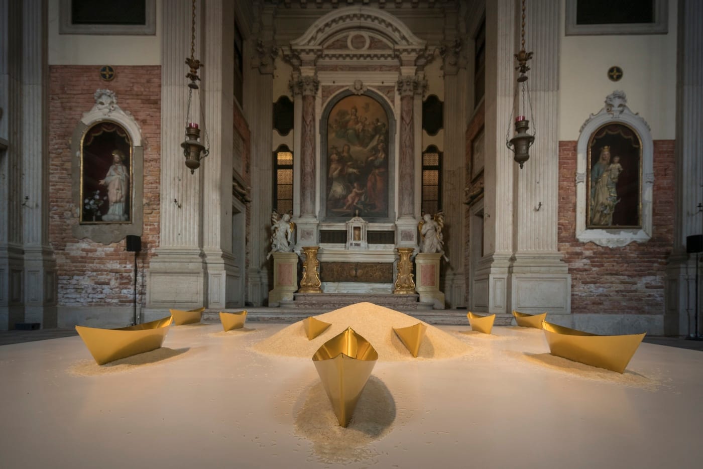 Artists Need to Create on the Same Scale that Society Has the Capacity to Destroy: Mare Nostrum, curated by Phong Bui and Francesca Pietropaolo, features installations by Wolfgang Laib and Lauren Bon inside the Chiesa di Santa Maria delle Penitenti, which reference ecological dangers. Immediately next door, a silent video by Shoja Azare and Shahram Karimi invites contemplation; Julian Charrière’s installation explores ephemerality; and Shirin Neshat’s video, Sarah (2016), deals with the relationship between water and women.