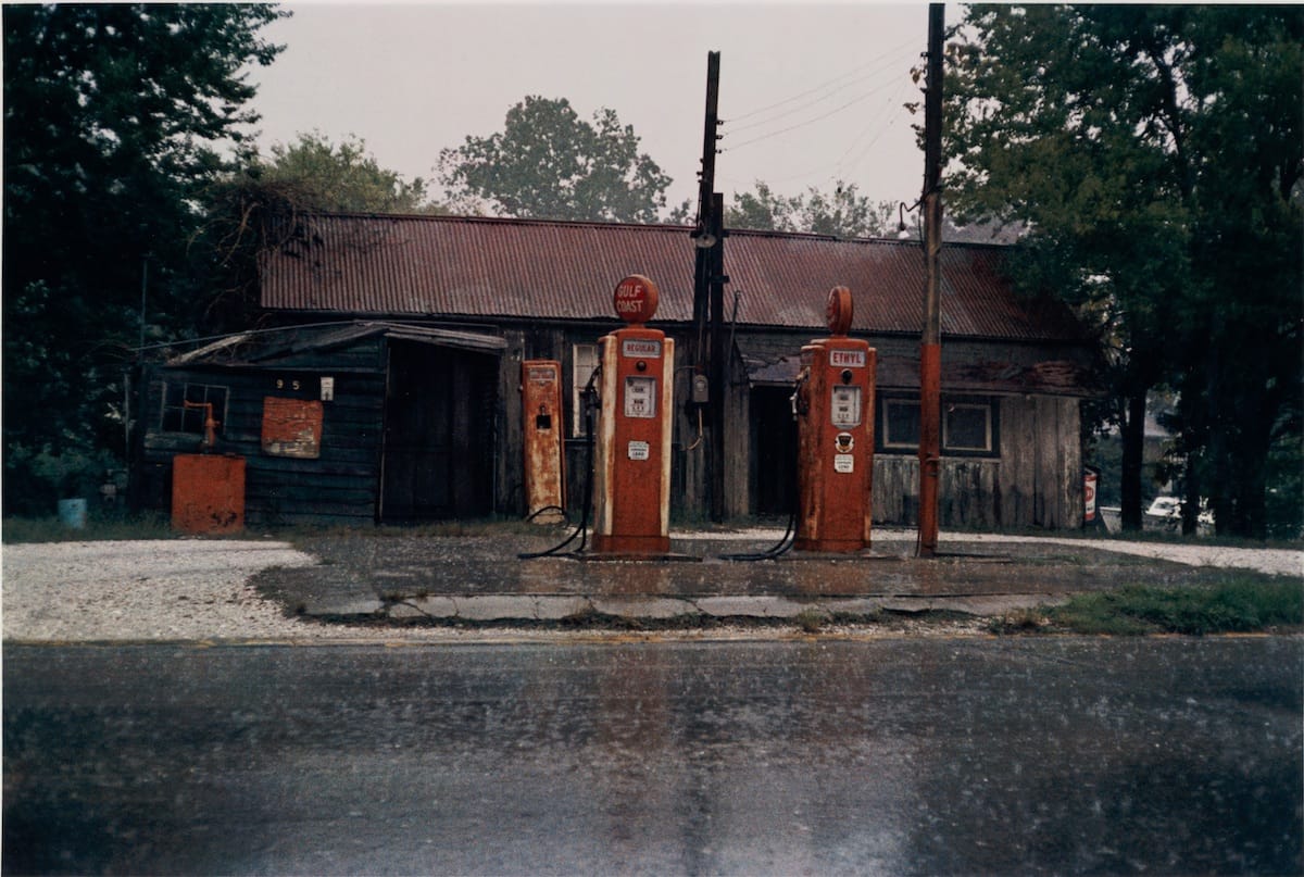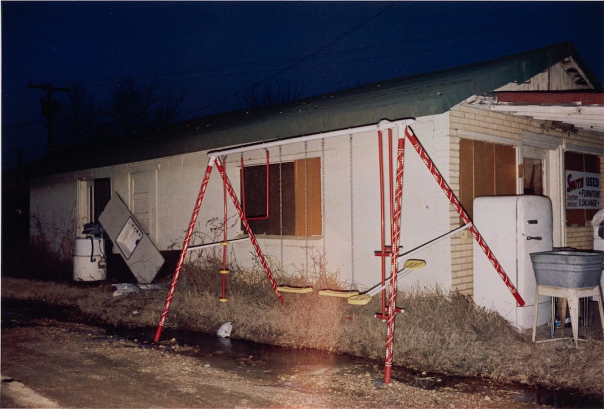 Eggleston, born in 1939, spent his childhood between his grandparents’ cotton plantation in Memphis and his parents’ house in Sumner, a town of about five hundred where Emmett Till’s killers were acquitted in 1955. It’s unlikely that Eggleston would be unaware of the themes his work suggests, and yet his vision remains detached; themes like segregation are dealt with only obliquely.