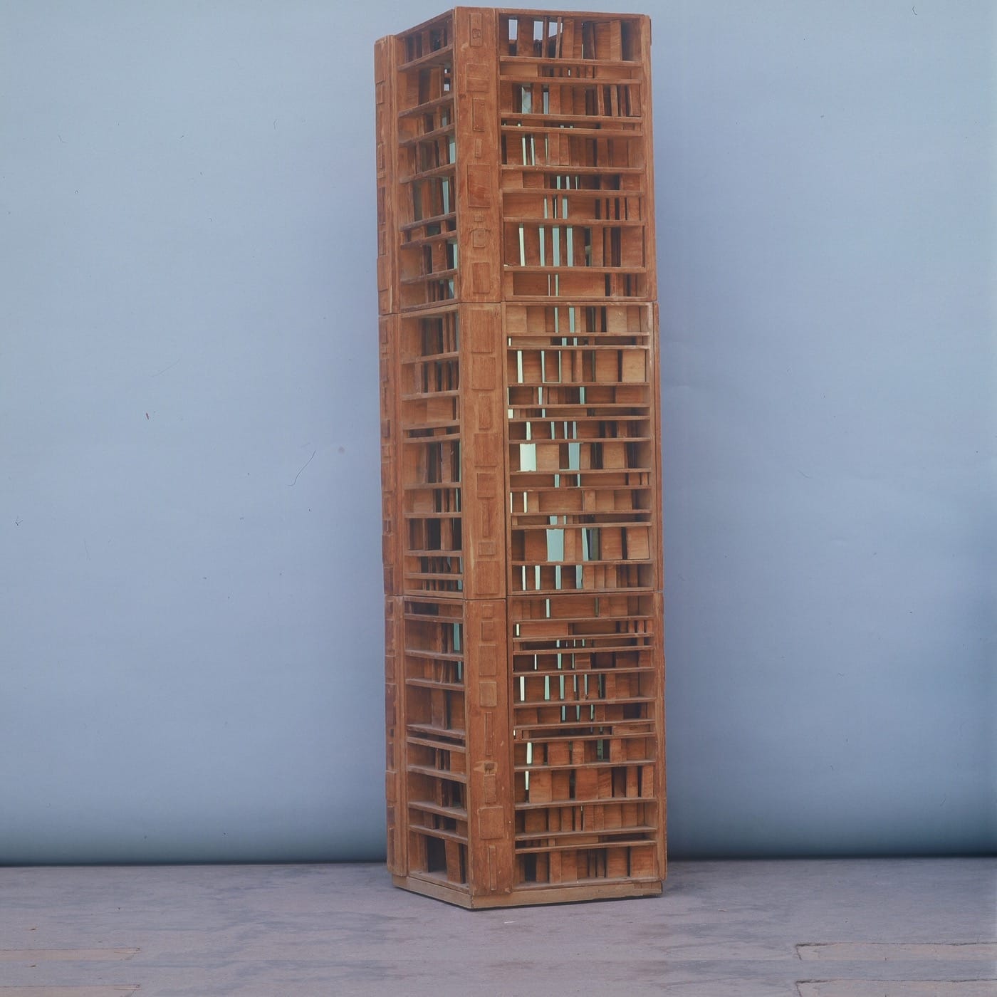 Her life’s work was kept almost intact in her apartment in the Kantari neighborhood of Beirut, having only rarely been sold. In recent years, a number of her seldom discussed sculptures — modular structures formed in calculated, irregular shapes — have found their way to Western institutions, but as far as reception is concerned, Choucair is still a rather obscure footnote. Most reviews are confined to some superficial observations on her paintings, and the sculptures, albeit mentioned, are nowhere offered any serious treatment.