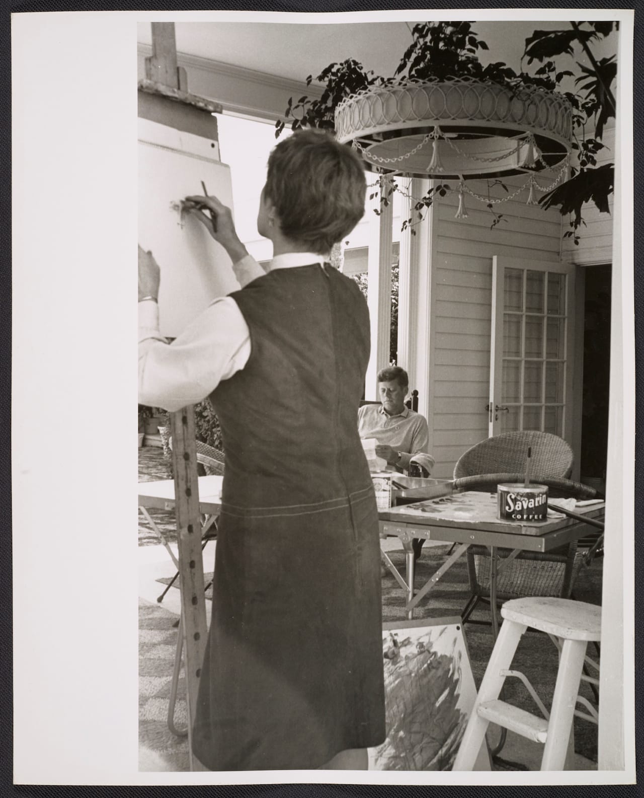 This career-making commission was granted mainly through the intervention of New York gallery owner Robert Graham after the rejected candidacies of painters Thomas Hart Benton and Charles Banks Wilson. “Mrs. de Kooning,” the White House informed Graham in December 1962, “is a painter acceptable to President Kennedy.” A few days after Christmas that same month, she and her assistant Eddie Johnson arrived in West Palm Beach, Florida, for a two-week-long residency in the company of the Kennedy family at their “Winter White House.”