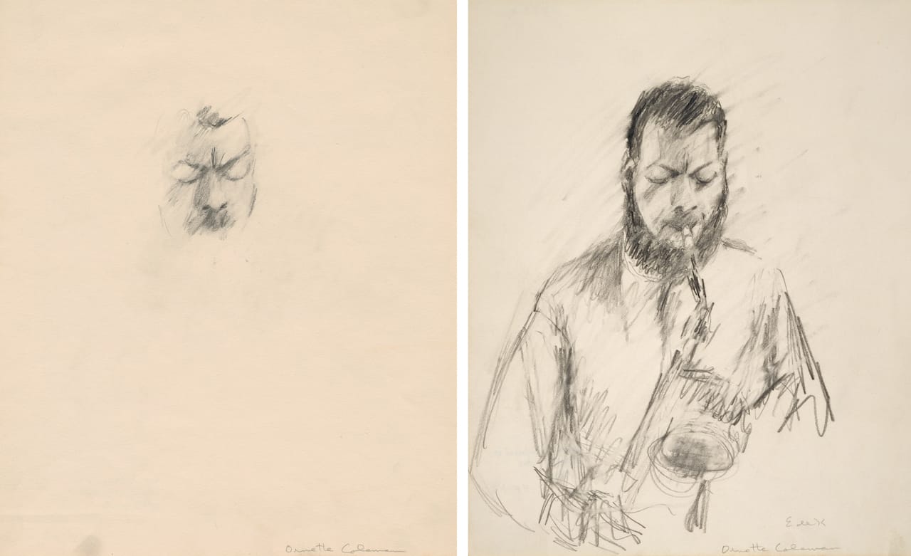 A triptych of tondo portraits from 1983 featuring John Ashbery, created for a limited edition of prints to accompany a republication of the poet’s “Self Portrait in a Convex Mirror” (1975), replicate the shape of the circular mirror used by the Mannerist painter Parmigianino. Inspired by the optical distortions characterizing the Italian painter’s self-portrait, Ashbery’s masterpiece contemplates the compelling distortions and interactive nature of seeing and representation — what he calls, in the title poem, vision’s “recurring wave of arrival.” Elaine de Kooning’s renditions of Ashbery rely on lively semicircular lines and crosshatches that concentrically accentuate the poet’s wide eyes, prominent jawline and iconic mustache.