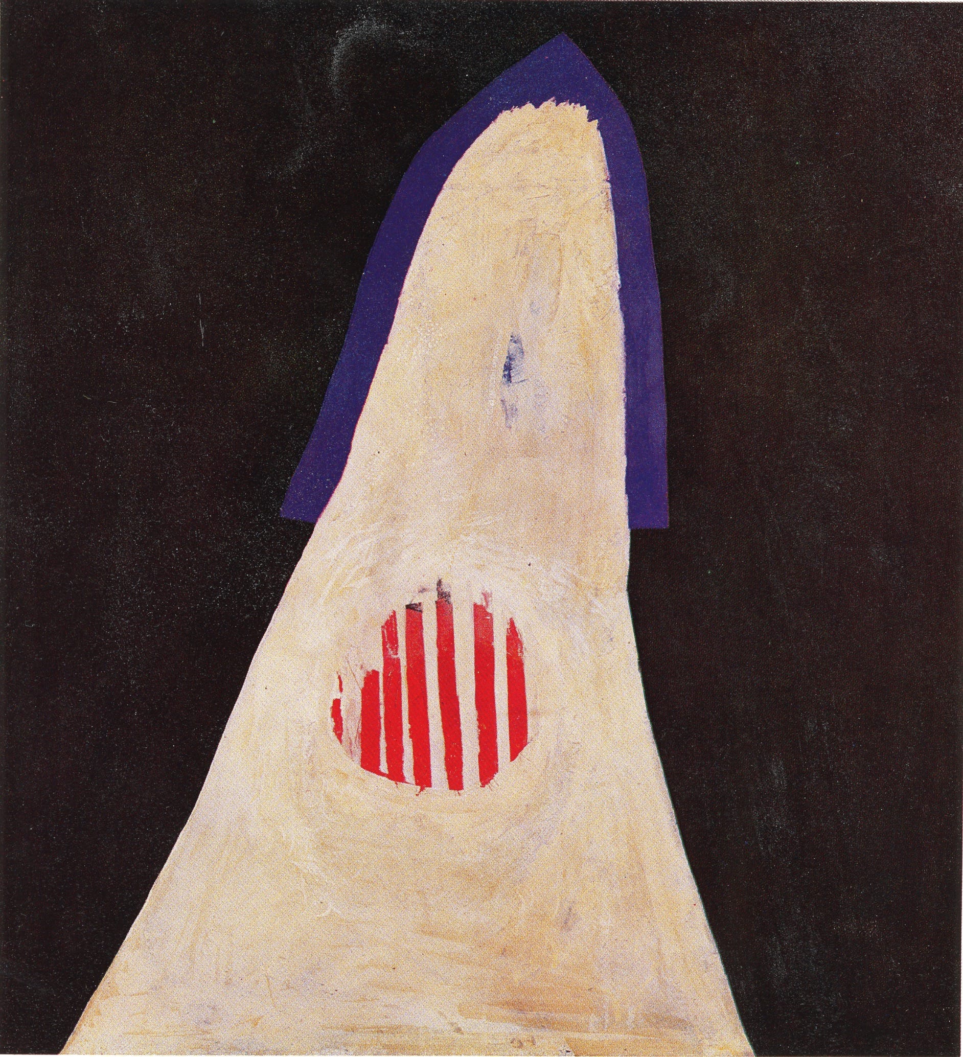 Küchenmeister kept his promise, becoming a painter after the war and portraying Bontjes van Beek “the way I felt her. Well, the way you love someone who disappears.” Stefan Roloff notes that many of Küchenmeister’s paintings feature abstracted figures, still recognizably human, but lacking hands and faces.
