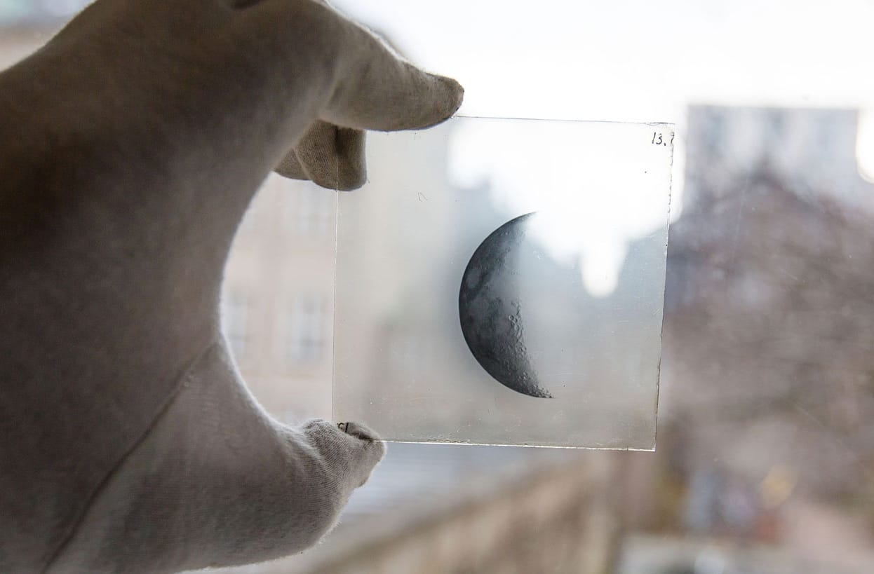 Over 150 glass plate photographs of the moon, stars, and solar eclipses were recently rediscovered in the basement of the the Niels Bohr Institute (NBI) in Copenhagen.
