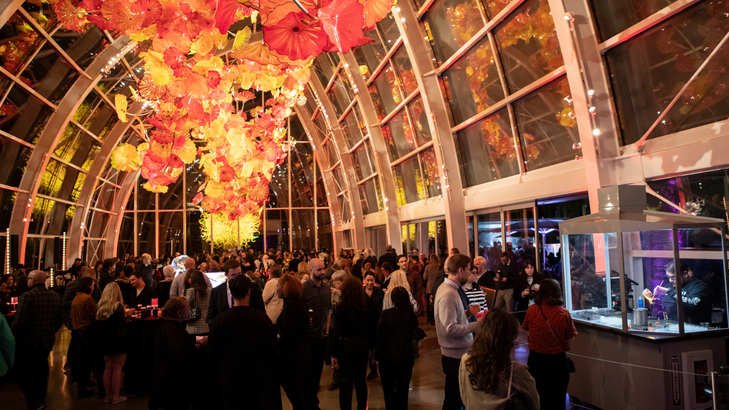- Events and parties, including Gather: The Official Opening Party (October 16 at Chihuly Garden and Glass)*, Pilchuck Block Party (October 17 in Pilchuck’s Pioneer Square Office Space and street), and the Pilchuck Annual Auction and Gala (October 17 at Fremont Studios)*.