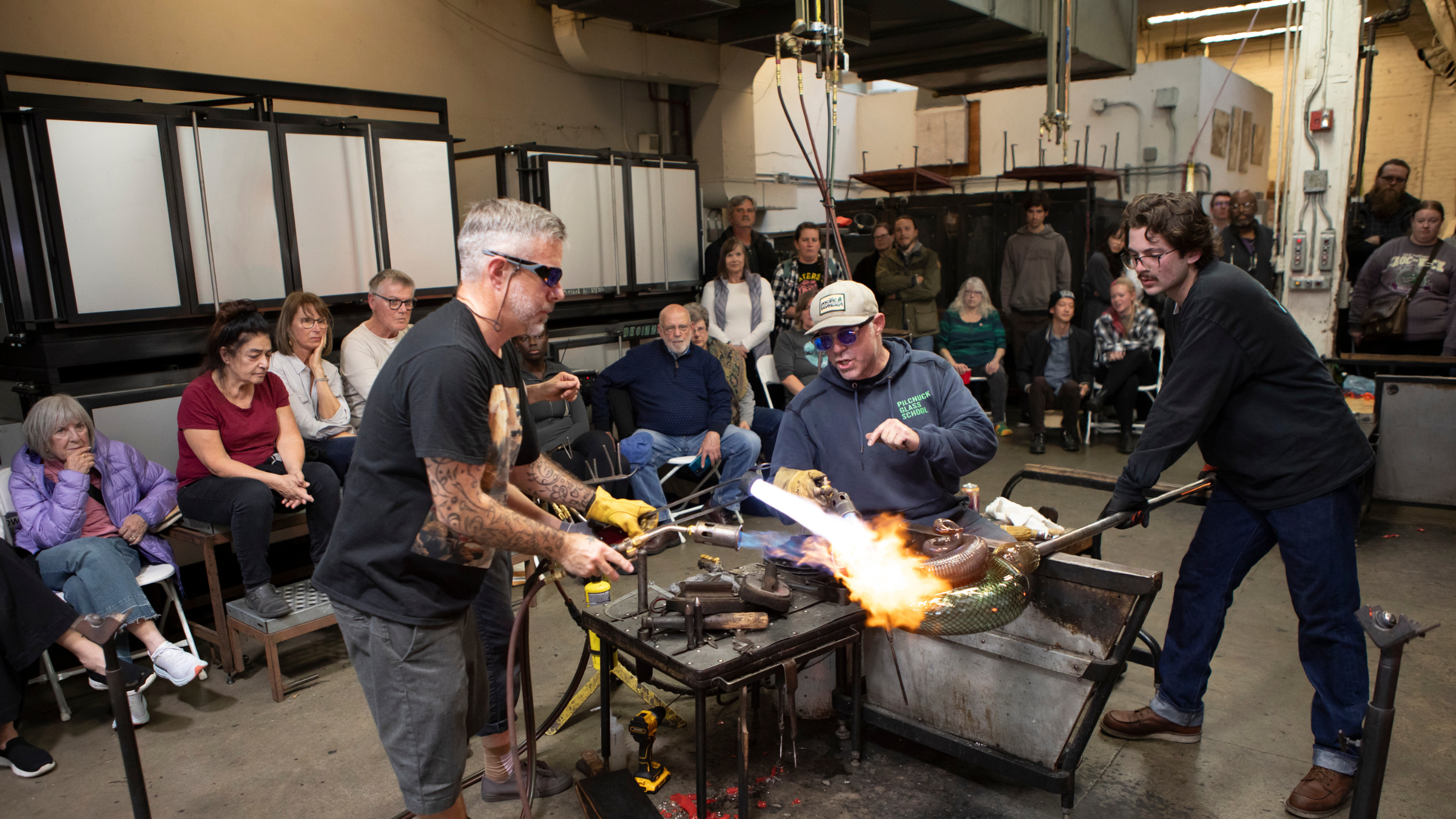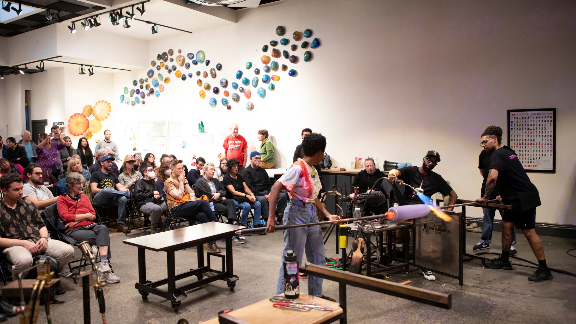 - Live artist demonstrations, including daily demos at Seattle Glassblowing Studio with artists like Jen Elek, Jeremy Popelka, Dan Alexander, and Richard Royal; Seattle Artists Jason Christian, Dan Friday, and Bri Chesler at Pratt Fine Arts Center; an overview of kiln-formed glass at Pacific NW Glass Guild*; and more.