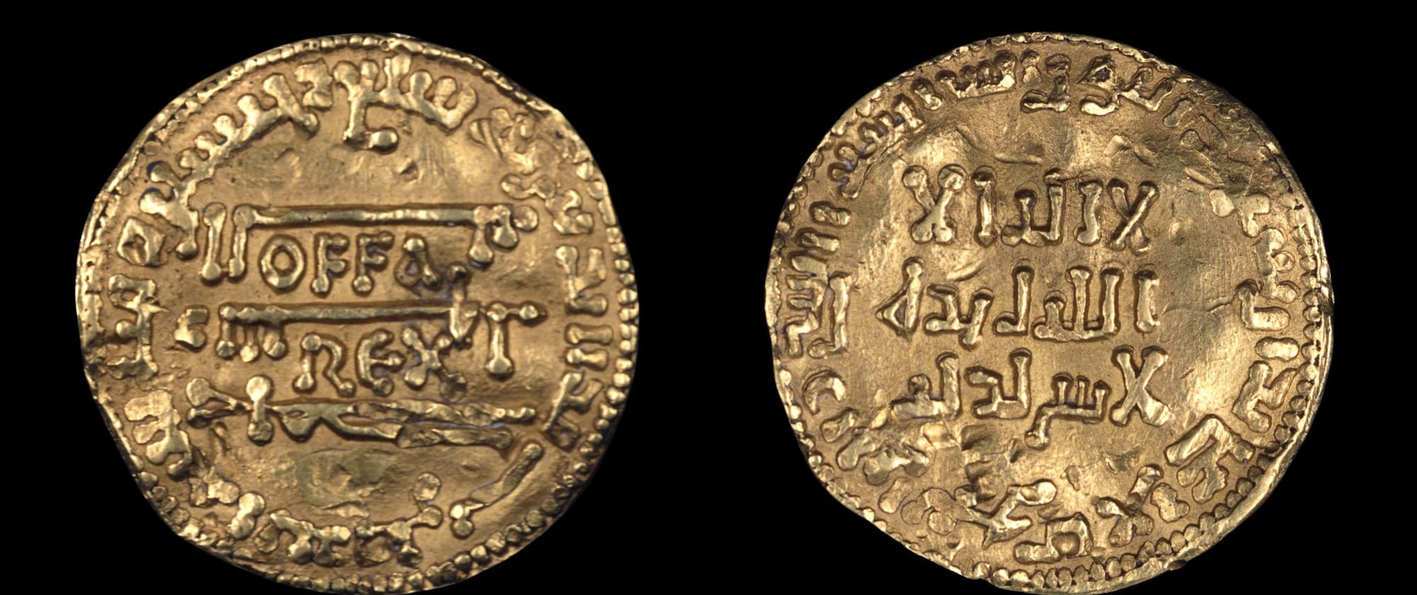 The presence of pseudo-Kufic tells us something important: that Arabic was valued by the Vikings as a mark of social status or capital, much in the way we might today buy a perfume with “Paris” written on it. For the Vikings, 10th century Islamic cities like Baghdad, Cordoba or Cairo were the Paris of their day: glittering capitals of art, scientific knowledge, and culture. And we have some evidence of the use of Arabic as social capital in the form of pseudo-Kufic inscriptions on weights for measuring silver. There are even examples of the use of real Kufic, most famously in the case of the dirham of the Anglo-Saxon King Offa of Mercia (r. 757–796), who kept the Arabic Shahada (profession of faith) intact as he inserted his name in the middle. It was modelled off a coin of the Abbasid Caliph al-Mansur, struck in Baghdad in the year 754–5.