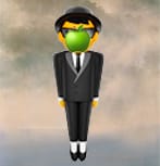 Man in Business Suit Levitating🕴️and Apple 🍏 as Magritte’s “Son of Man”