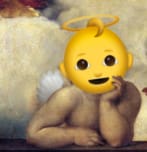 The generous world of emoji gives us not one but two distinct angelic emoticons: the Smiling Face With Halo 😇 and Baby Angel 👼. The latter, who is conveniently winged, is particularly well poised to stand in as one of the two Putti resting on a balustrade at the bottom of Raphael’s “Sistine Madonna” (1512-1513) altarpiece. In the Renaissance master’s original, the pudgy cherubs, which have acquired cult status of their own, glance upward at the scene with expressions of boredom. In this emoji remix, Baby Angel looks out at the viewer with a seemingly sarcastic smile that is sure to delight your art lover friends and permanently creep everyone else out.