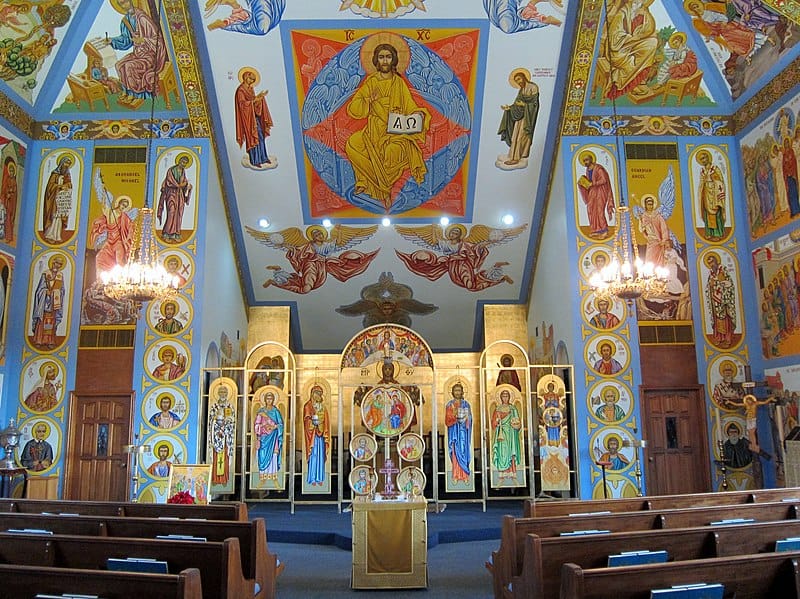 Growing up as a Byzantine Catholic, Andy Warhol experienced sacred images at church in a profoundly different way than Roman Catholics or Protestants. The Byzantine rite is a unique Catholic community that originates in Ukraine. Holy Angels Byzantine Catholic Church in San Diego demonstrates that Byzantine Catholic visuals are more akin to Eastern Orthodox ones. The church is similar to Pittsburgh's St. John Chrysostom Byzantine Catholic Church, which the young Warhol attended. The iconostasis — the screen of icons that forms the focal point of liturgy — features the seriality and repetition that would become mainstays in Warhol's artwork.