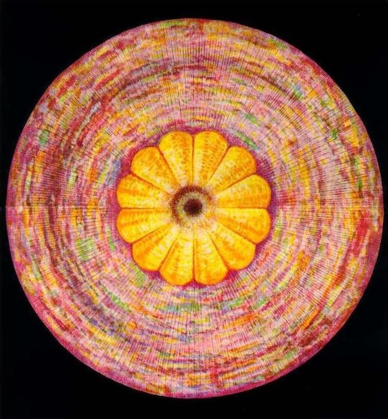 There is a clear affinity between Agnes Pelton's painting "Sand Storm" (1932) and the illustration of the Crown Chakra in C.W. Leadbeater's The Chakras (1927), the book that introduced the chakra system to the United States and Europe. As modern artists of the early 20th century sought to find new forms, many like Pelton turned to theosophical texts and their unusual illustrations.